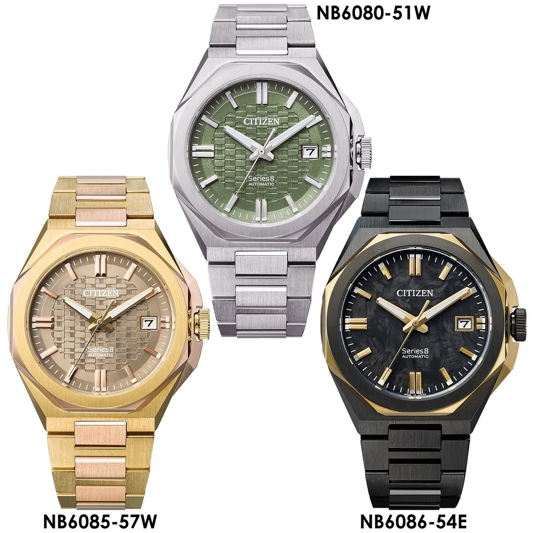 Citizen si sta dando da fare in questo momento, ampliando la gamma della Serie 8 con il rilascio dei modelli NB6080-51W, NB6085-57W e una referenza in edizione limitata, il modello NB6086-54E. Questi modelli sono più piccoli rispetto alle precedenti varianti da 42 mm, grazie al passaggio a un diametro di 39,3 mm per soddisfare le attuali tendenze del mercato. La cassa è realizzata con cinque componenti distinti in acciaio inossidabile, tutti lucidati per ottenere una finitura multiangolare. Una specifica tecnica fondamentale è lo spessore di 10,4 mm, ottenuto mantenendo una resistenza all'acqua di 20 bar (200 metri).