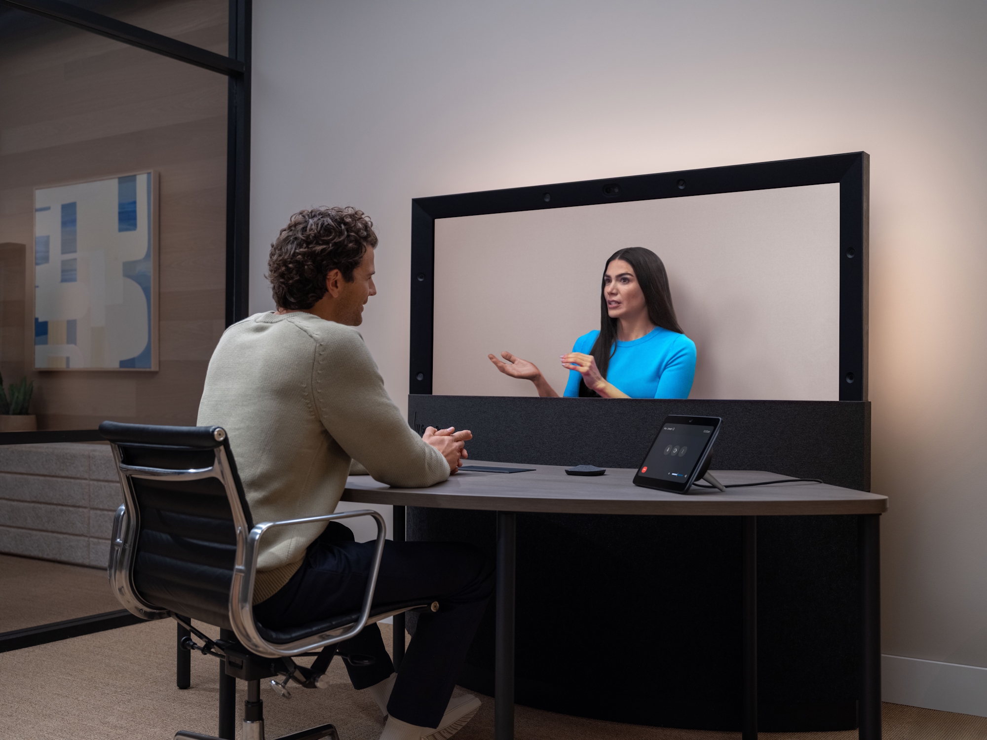 Si tratta essenzialmente di un enorme schermo 3D con una serie di telecamere intorno, oltre a due microfoni su un tavolo collegato. Gli utenti possono sedersi di fronte a questo tavolo per effettuare videochiamate - videochiamate che sembrano effettivamente come se la persona con cui si sta parlando fosse seduta proprio di fronte a lei.