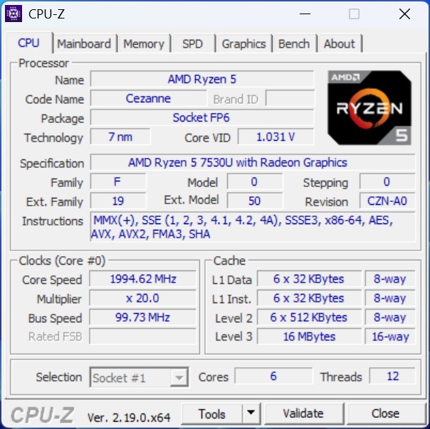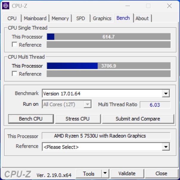 Il AMD Ryzen 5 7530U offre solide prestazioni della CPU nel segmento di fascia media. Con sei core e dodici thread, è particolarmente adatto al multitasking, alle applicazioni da ufficio e ai carichi di lavoro produttivi. Il processore è in grado di gestire in modo affidabile anche compiti più intensivi dal punto di vista computazionale, come l'elaborazione dei dati o il rendering leggero, ma rimane al di sotto degli attuali modelli di fascia alta.