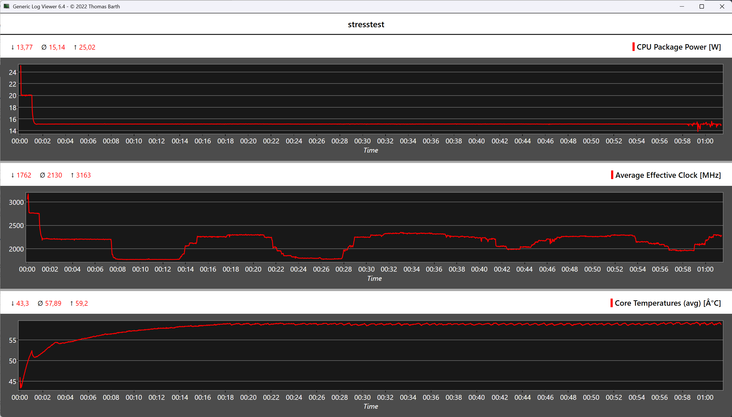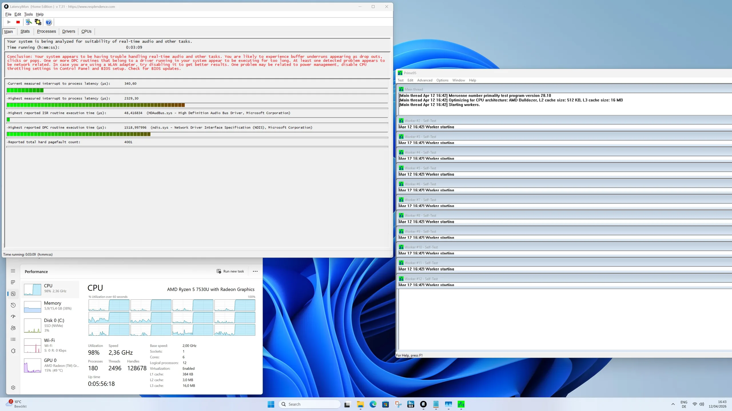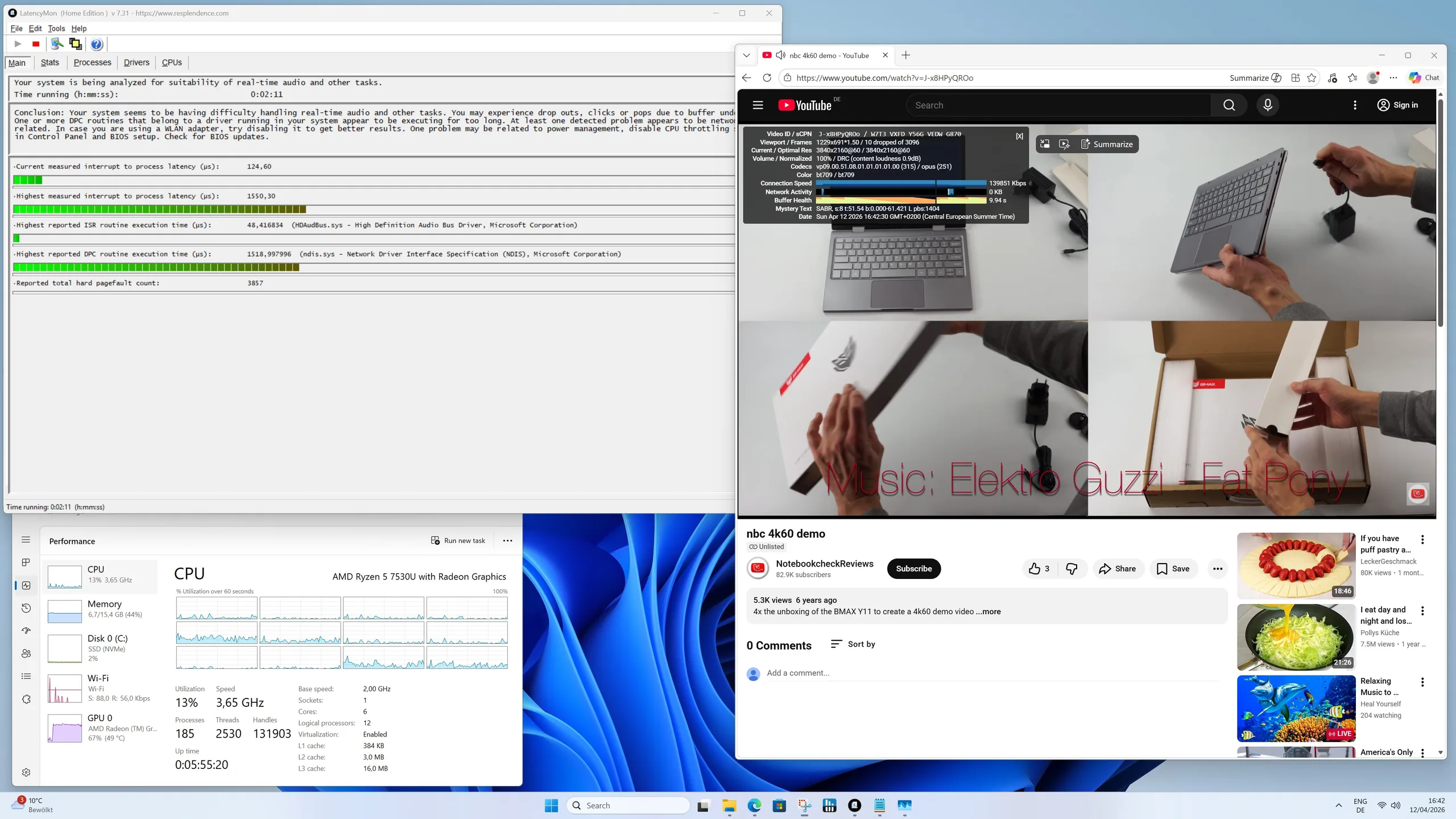 L'involucro del Geekom A5 Pro rimane piacevolmente fresco sia in modalità idle che sotto carico, senza alcun punto caldo evidente. Nel test di stress, le temperature del processore Ryzen installato salgono brevemente a soli 60 °C, ma rimangono in un intervallo non critico. Il TDP di soli 15 watt viene dissipato in modo affidabile dal sistema di raffreddamento, garantendo prestazioni stabili.