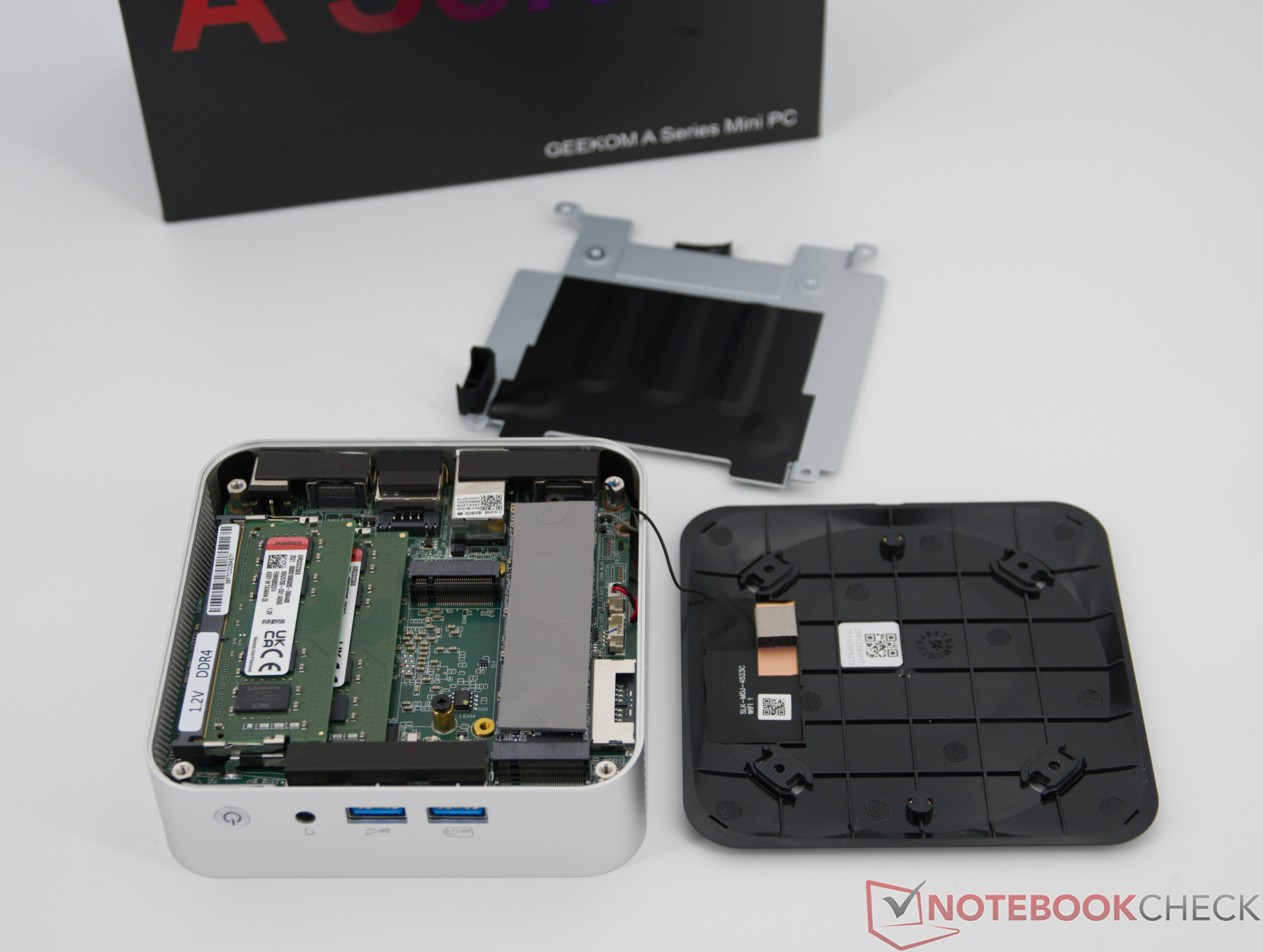 Il Geekom A5 Pro viene fornito dalla fabbrica con la RAM e l'SSD installati e quindi è subito pronto all'uso. L'aggiornamento è possibile in linea di principio, ma richiede una certa destrezza nell'aprire l'alloggiamento compatto.
