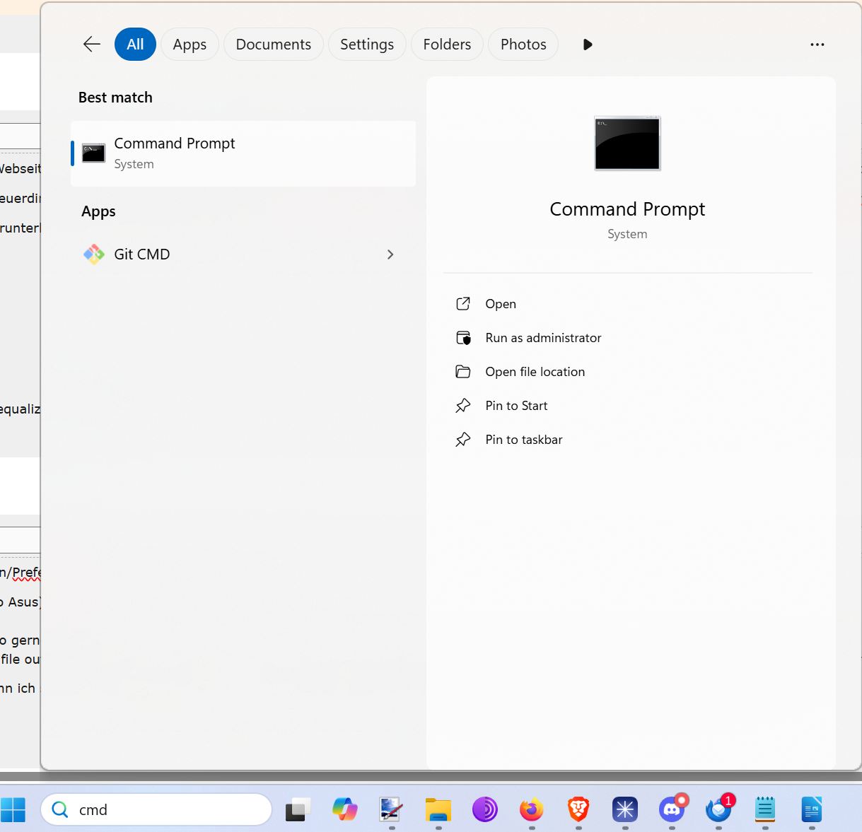 Il modo più rapido, tuttavia, è attraverso il terminale. Anche se sembra intimidatorio, recentemente è diventato il mio metodo più veloce: apra CMD o PowerShell tramite la ricerca nel menu Start e inserisca: