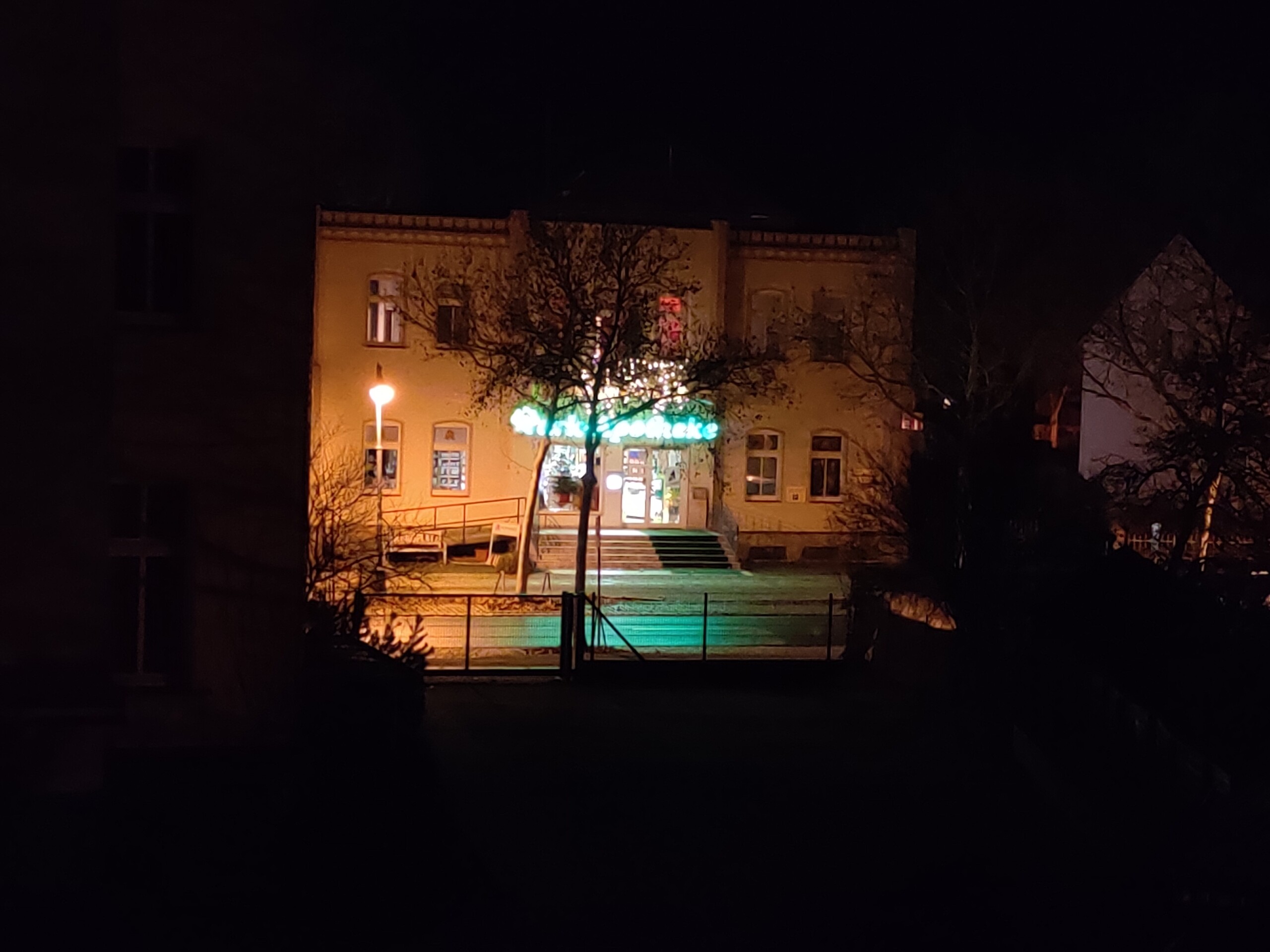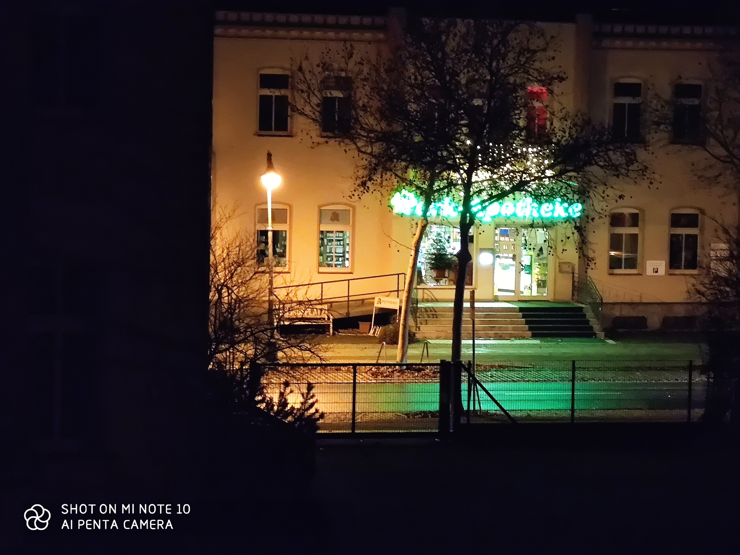 Il nuovo sensore di immagine Samsung del Mi Note 10 raggiunge i suoi limiti in condizioni di scarsa illuminazione, nonostante l'uso del binning dei pixel. Anche la sua nitidezza d'immagine non è convincente, nonostante la nostra scena stradale sia abbastanza ben illuminata.