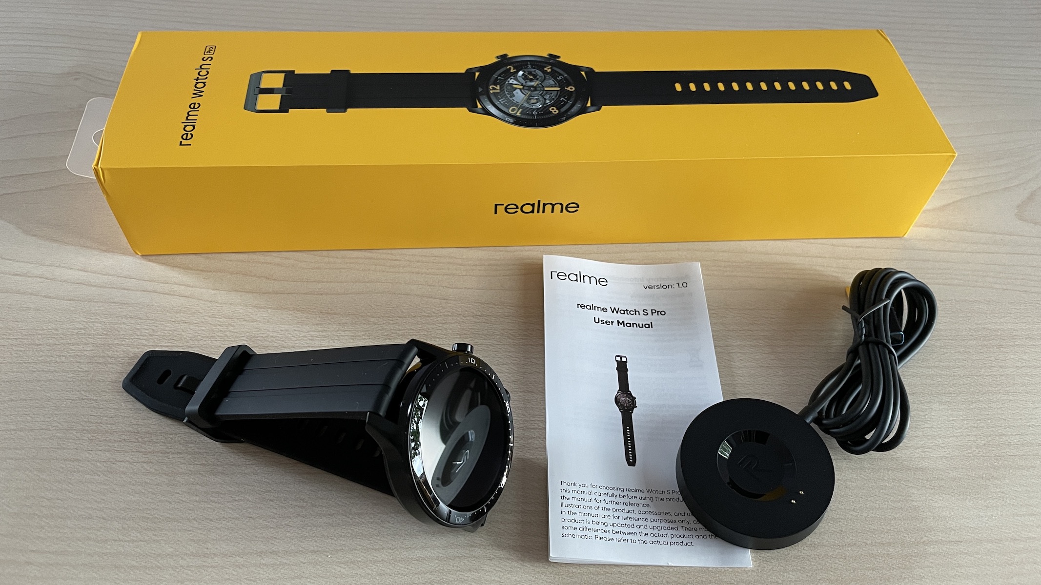 Per quanto riguarda i materiali: Sul Watch S Pro la cassa e la fibbia del cinturino sono in lega di alluminio. Sul Watch 2 Pro entrambi sono fatti di plastica, che Realme nasconde con un look metallico. Sulla bilancia, la lega di alluminio aumenta il peso a 44 g (~1.55 oz, senza cinturino) rispetto ai 40 g (~1.41 oz) per il Watch 2 Pro. Lo spessore di entrambi è lo stesso a circa 13 mm (~0.5 in) nonostante le diverse dimensioni dovute al design.