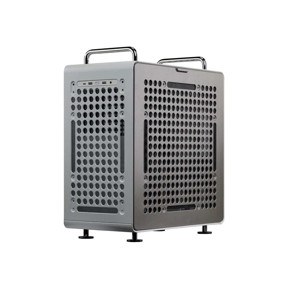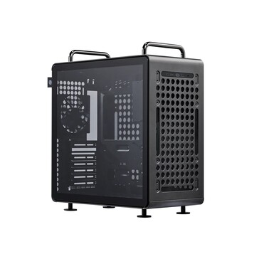 Il nuovo Cooler Master QUBE 540 è pubblicizzato come un case per PC molto versatile con un prezzo relativamente basso. Le sue dimensioni di 42,5 x 42,5 x 22,5 cm lo rendono compatibile con schede madri nei formati da ITX a E-ATX, nonché con schede grafiche lunghe fino a 41,5 cm. Le grandi aperture circolari sulla parte anteriore e posteriore possono essere utilizzate per fissare gli accessori direttamente alla cassa.