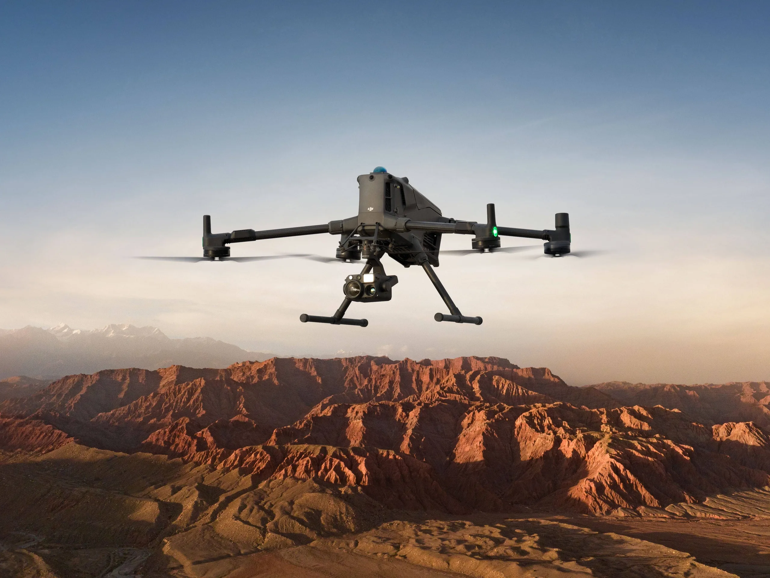 Questi sono solo tre esempi di un elenco molto più ampio di carichi utili possibili. Inoltre, Matrice 400 è dotato di un potente LiDAR, di un radar mmWave e di sensori di visione fisheye a colori in condizioni di scarsa illuminazione, che gli consentono di discernere gli oggetti più piccoli, come le linee elettriche ad alta tensione su una catena montuosa di notte. Il contenuto dell'immagine viene presumibilmente trasmesso su distanze fino a 40 chilometri tramite il sistema O4 Enterprise Enhanced, ed è anche possibile utilizzare un drone come relè per la trasmissione, il che può essere utile nelle aree edificate.