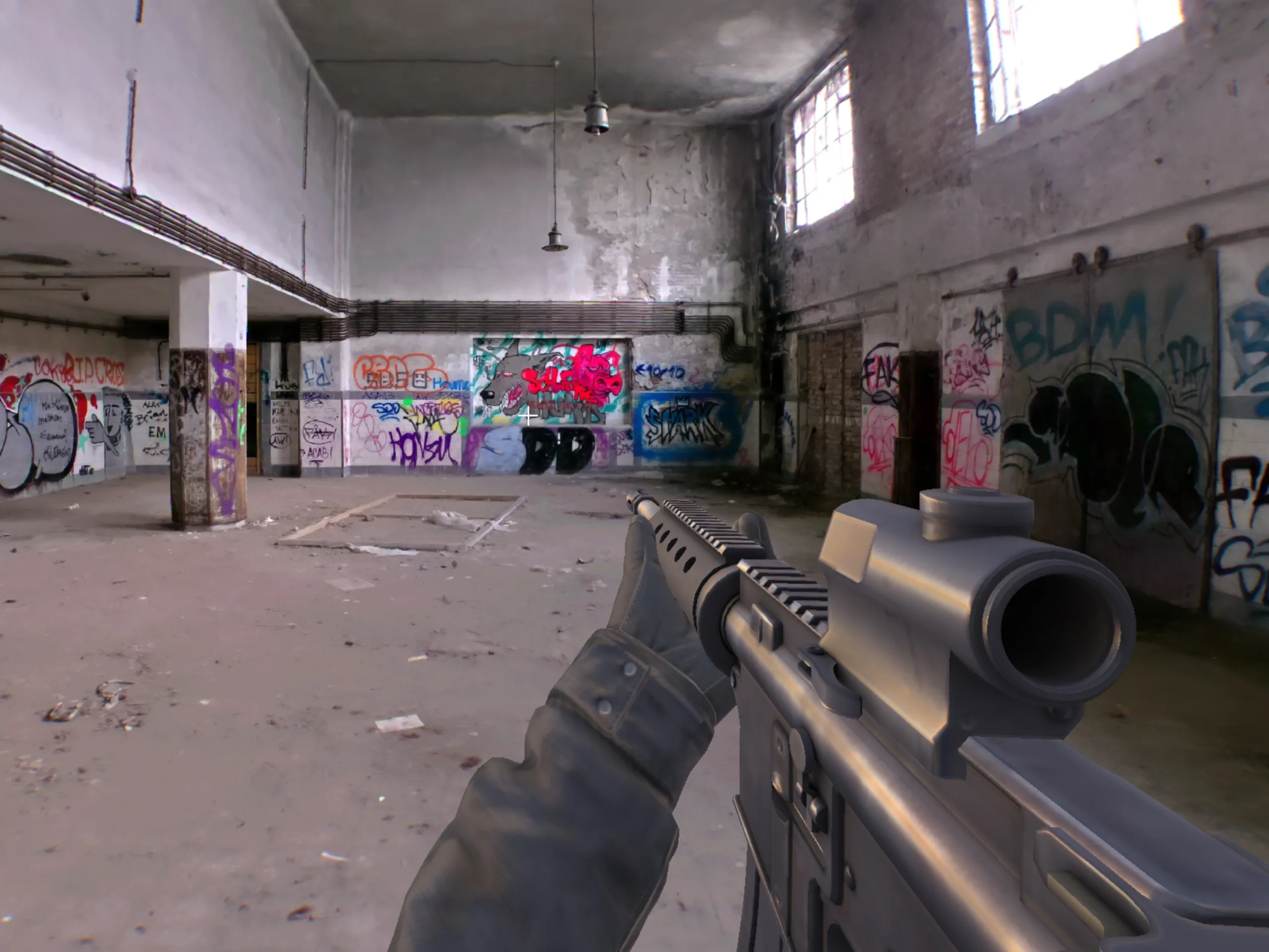 Il browser shooter giocabile si basa sulla scansione di un vero edificio abbandonato e funziona direttamente tramite PlayCanvas. In sostanza, i giocatori camminano nell'edificio e incontrano casualmente dei nemici. Questo è sufficiente per avere una prima impressione della grafica 3D Gaussian Splatting, e il risultato è piuttosto impressionante.