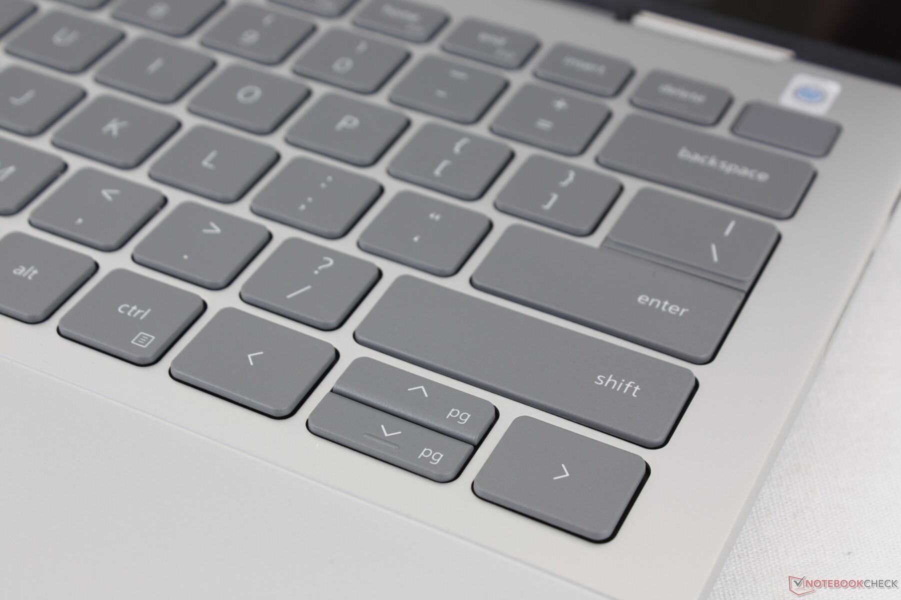 Il layout della tastiera rimane identico a quello dell'Inspiron 14 7415 2-in-1 nonostante la riprogettazione dello chassis. L'esperienza di digitazione è soddisfacente e con un rumore minimo, ma è necessario abituarsi al feedback un po' morbido. In particolare, il tasto Spazio avrebbe potuto beneficiare di un clic più deciso per un feedback più forte.