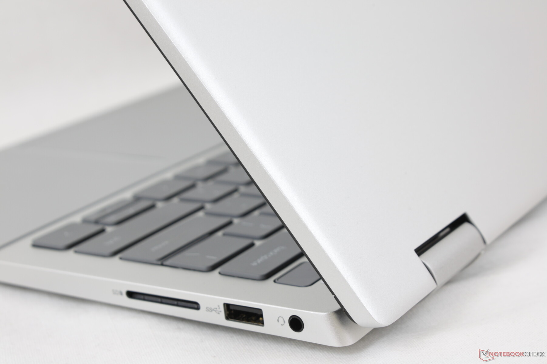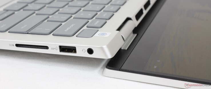 Le opzioni di porta sono buone per un subnotebook convertibile. Apprezziamo in particolare la porta HDMI integrata, che manca a molti concorrenti. Tuttavia, bisogna tenere presente che le due porte USB-C supportano solo il trasferimento dati, l'alimentazione e la DisplayPort; non è disponibile la Thunderbolt.