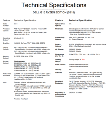 Inoltre, entrambe le macchine sono disponibili con la variante da 115 W di GeForce RTX 3060, anche se Dell non lo dichiara esplicitamente nelle sue specifiche tecniche per qualche motivo. Tuttavia, il G15 5510 sarà disponibile anche con una GeForce GTX 1650, una scheda basata su Turing che ha 4 GB di GDDR6 VRAM.