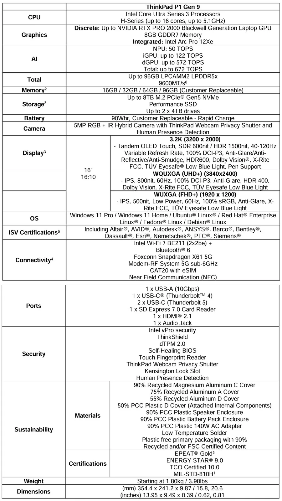 Il Lenovo ThinkPad P1 Gen 9 sarà disponibile a giugno 2026. Lenovo non ha ancora annunciato alcun prezzo.