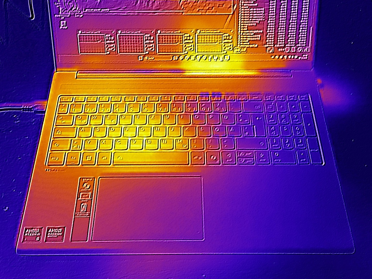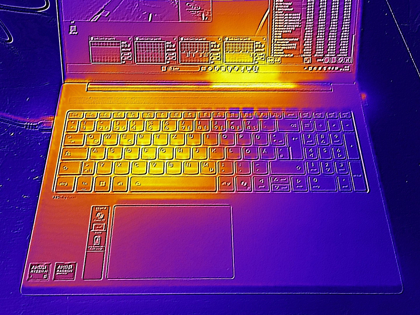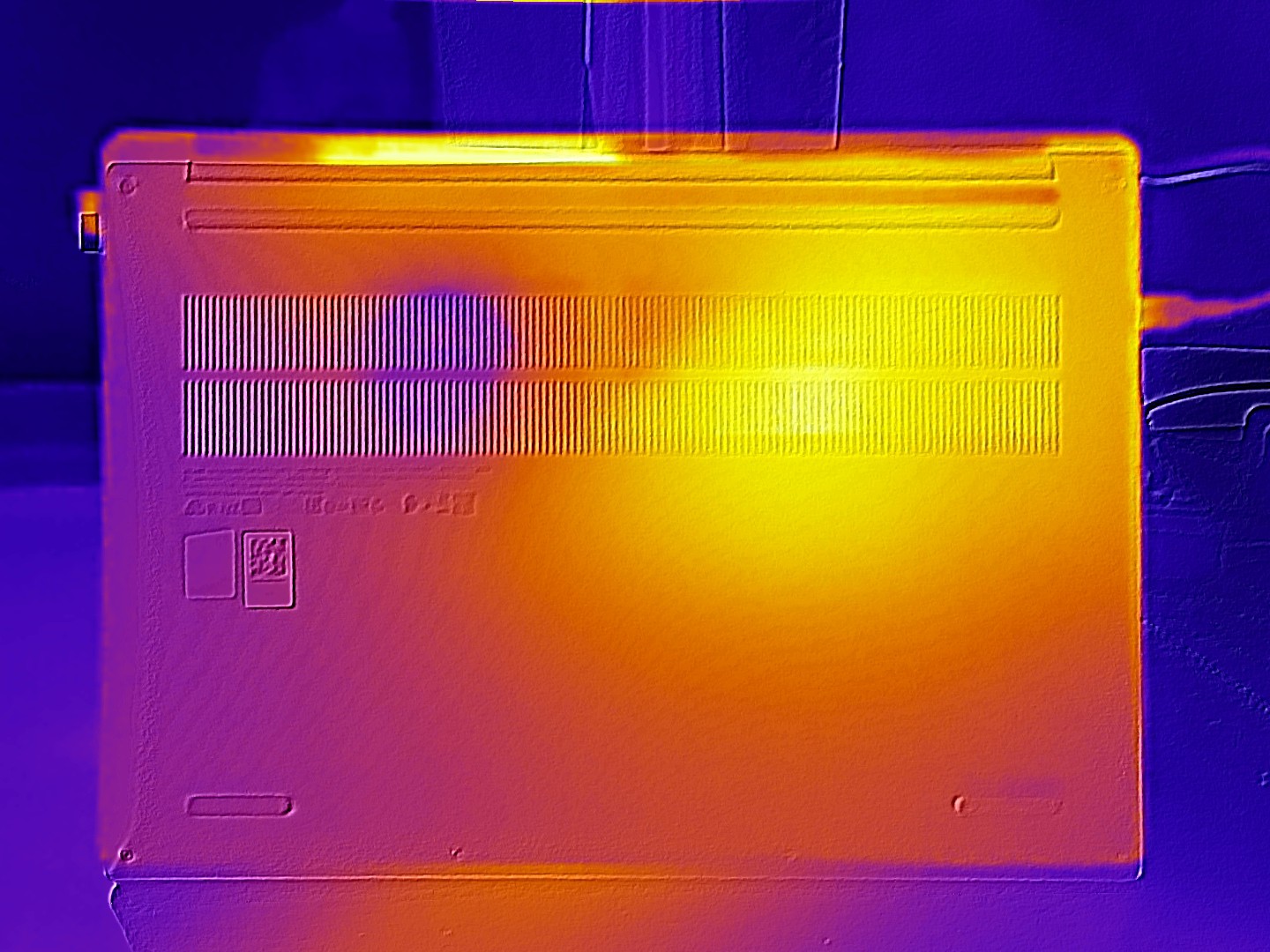 Per quanto riguarda le temperature, l'IdeaPad mostra il suo lato migliore. In idle e durante il carico 3D, funziona in modo sensibilmente più fresco rispetto ai suoi concorrenti interni, consentendo di utilizzare il dispositivo in grembo, se necessario.