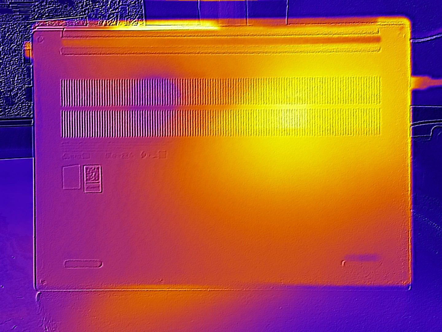 (+) La temperatura massima sul lato superiore è di 35 °C / 95 F, rispetto alla media di 34.3 °C / 94 F, che varia da 21.2 a 62.5 °C per questa classe Office.