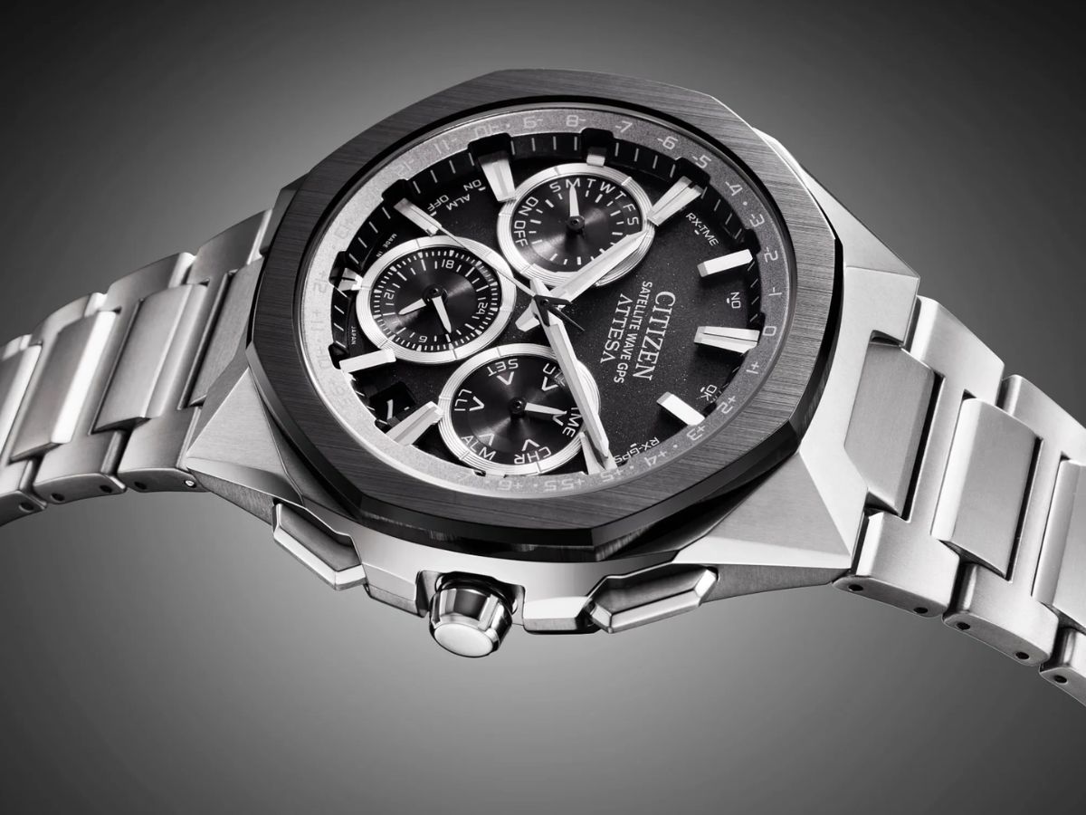 Citizen Attesa è dotato di un movimento F950, in grado di ricevere i segnali orari in tre secondi e di rimanere preciso entro i cinque secondi mensili. Questo modello GPS è dotato della funzionalità Double Direct Flight, che consente agli utenti di passare facilmente da un fuso orario all'altro. Inoltre, questo orologio analogico a tre lancette dispone di un cronografo a 1/20 di secondo, di indicatori del livello di luminosità e della riserva di carica e di un calendario perpetuo.