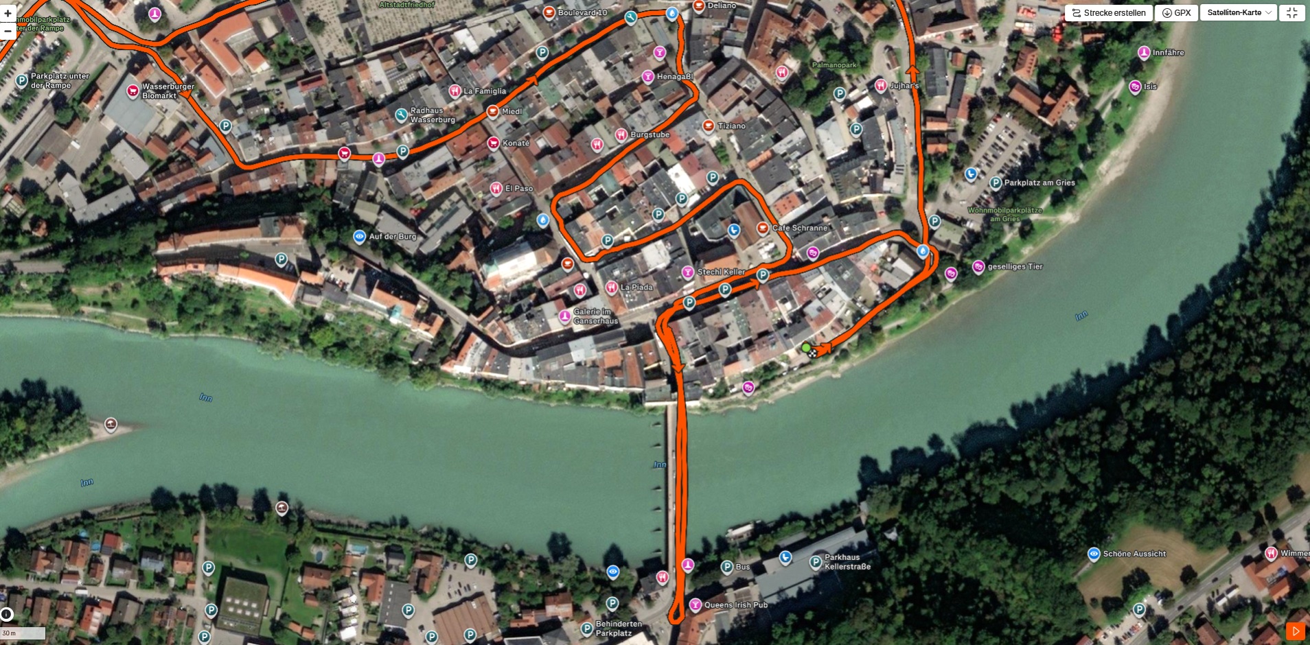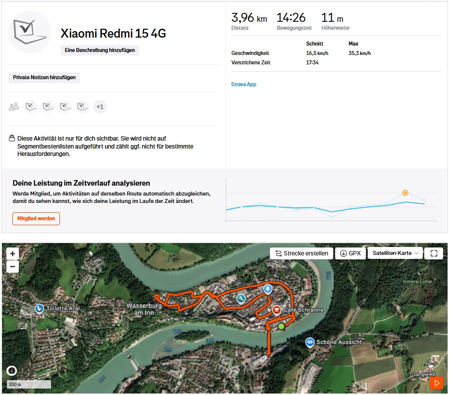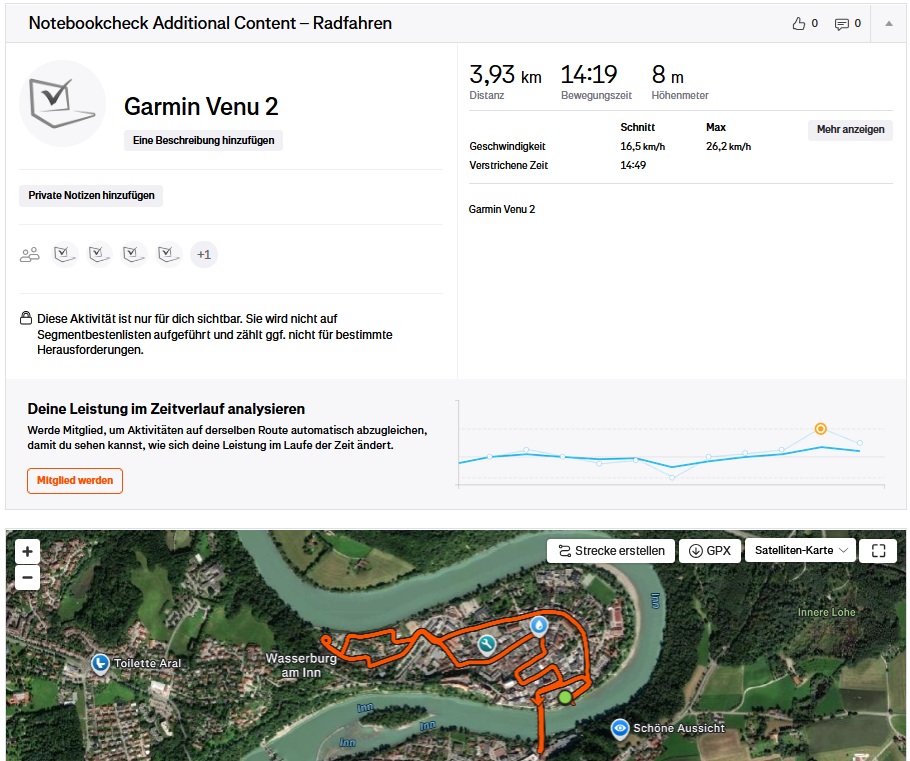 Sia in strade strette del centro storico che in aree meno densamente edificate, il dispositivo mantiene la linea ideale in modo quasi costante e, nel complesso, è quasi altrettanto preciso del dispositivo di confronto, il Garmin Venu 2.