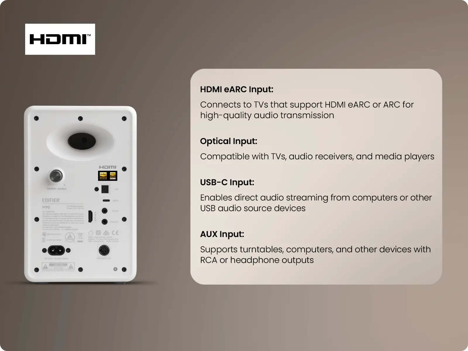 Edifier M90: lancio di eleganti altoparlanti attivi con supporto LDAC e HDMI eARC