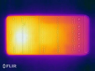 Sotto carico costante, abbiamo misurato temperature superficiali di oltre 47 °C in alcuni punti. Non basse, ma nemmeno criticamente alte. Le prestazioni di raffreddamento sono altrettanto efficienti come nel predecessore; nei test di stress 3DMark, abbiamo ottenuto un throttling moderato fino al 40%. Tuttavia, a volte il Galay S26+ può mantenere le prestazioni massime più a lungo.