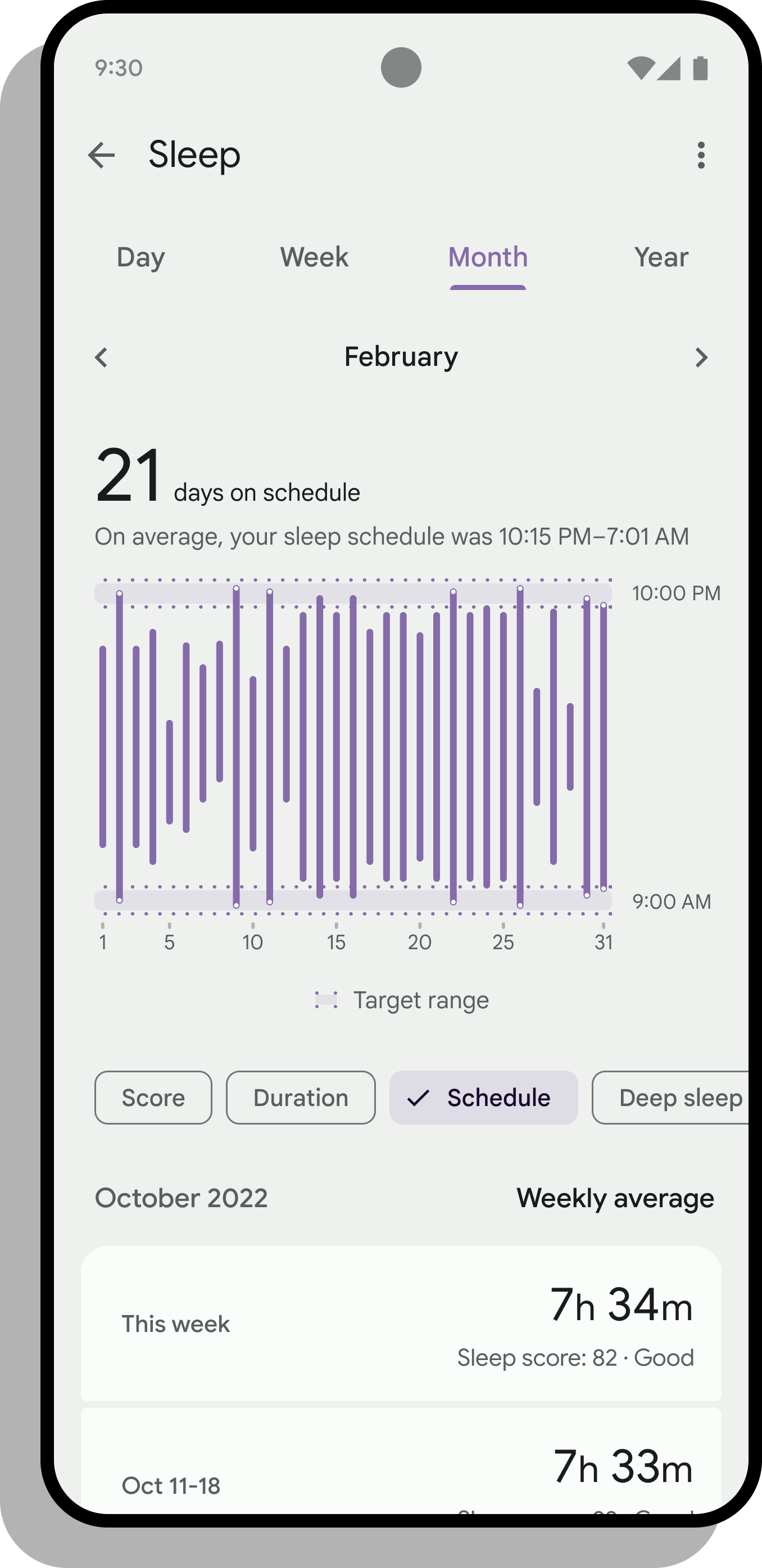 Secondo le note di rilascio, Fitbit ha cercato di rendere la sezione Sonno più facile da navigare, mostrando statistiche chiave come la durata del sonno, il punteggio del sonno e la timeline del sonno nella stessa vista. La timeline del sonno presenta ulteriori dettagli, con approfondimenti che vengono rivelati quando si tiene premuto su una sezione del grafico. Inoltre, le visualizzazioni per la settimana, il mese e l'anno le consentono di analizzare come sono cambiate le sue abitudini di sonno in un periodo di tempo.