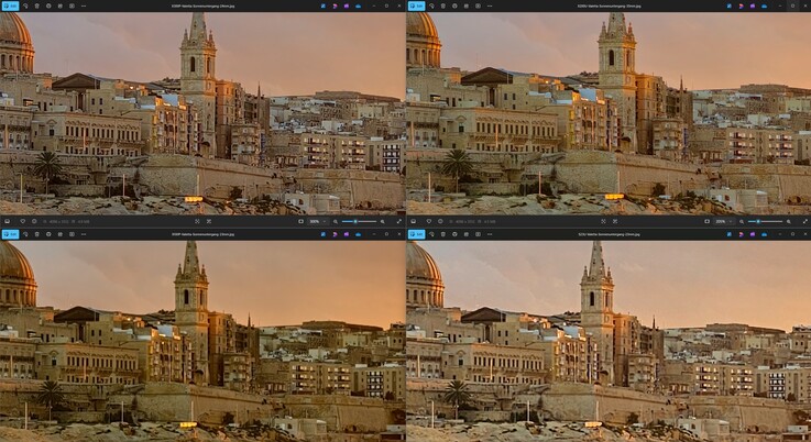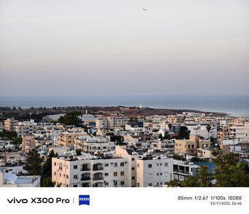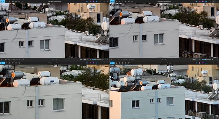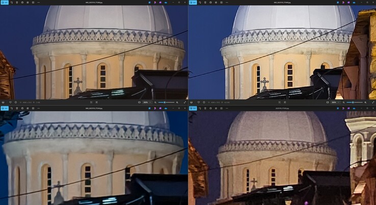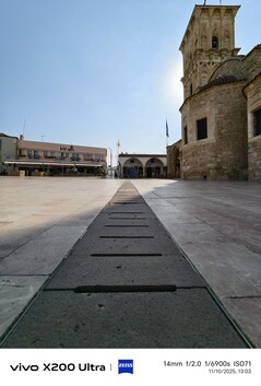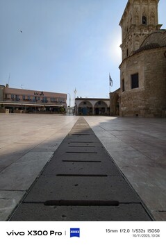 La Chiesa di San Lazzaro a Larnaca è servita come soggetto di riferimento per il primo confronto ultragrandangolare tra i modelli Vivo. Mi scuso per le angolazioni di ripresa leggermente diverse in ogni caso, ma il vincitore dovrebbe essere abbastanza chiaro a prescindere. Vivo X200 Ultra non solo offre il campo visivo più ampio ed è l'unico modello in grado di catturare la chiesa nella sua interezza, ma la sua resa dei dettagli più lontani è anche chiaramente la più nitida. Anche alla luce del giorno, è quindi il chiaro vincitore con un ingrandimento di 300×, anche se Vivo X300 Pro è ancora nettamente migliore di Vivo X100 Pro.