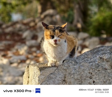 Con il teleconvertitore di Vivo X300 Pro, il teleobiettivo 3,7x può essere convertito in un obiettivo 8,7x. Questa soluzione è più ingombrante, ma produce un effetto simile. Di seguito sono riportati alcuni scatti realizzati con zoom ottico 8,7x e 10x; il secondo ritratto di gatto è stato catturato rispettivamente a 17,4x e 20x.