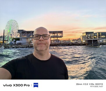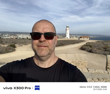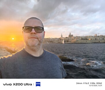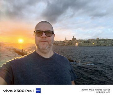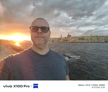 Non sono esattamente una grande fan dei selfie, ma nell'interesse della scienza, ho scattato alcuni selfie in vari luoghi e in diverse condizioni di luce. A mio avviso, Vivo X300 Pro è migliorato notevolmente in termini di qualità dei selfie rispetto a Vivo X200 Ultra. Nella maggior parte dei casi, l'ultima ammiraglia Vivo offre l'immagine più naturale del quartetto, non solo grazie al campo visivo notevolmente più ampio, ma anche in termini di tonalità della pelle, almeno nel mio caso. Nell'ultimo esempio, con il tramonto che funge da fonte di retroilluminazione, tuttavia, anche il Vivo X300 Pro fa un po' fatica.