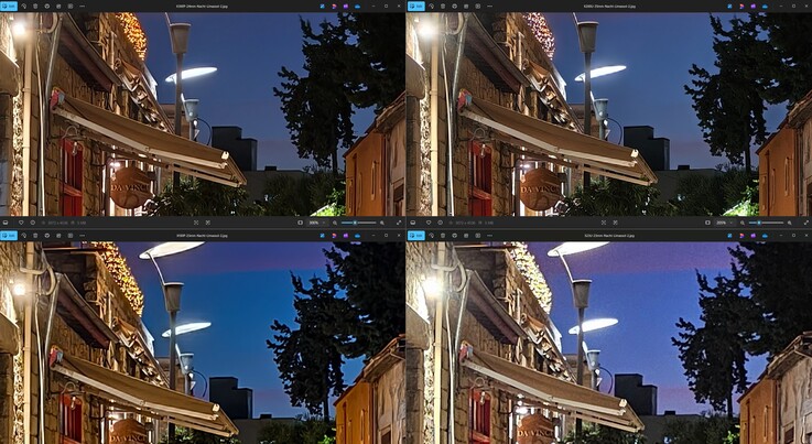 Senza alcun teleconvertitore o zoom 10x, i quattro teleobiettivi scattati a Limassol mostrano di cosa sono capaci di notte, ciascuno utilizzando la sua lunghezza focale nativa. Vivo X300 Pro e Vivo X200 Ultra sono chiaramente di un altro livello. Per inciso, la fonte di luce in primo piano era in realtà blu, non bianca, come Samsung interpreta erroneamente la scena. Inoltre, si nota una notevole mancanza di dettagli nelle ombre.