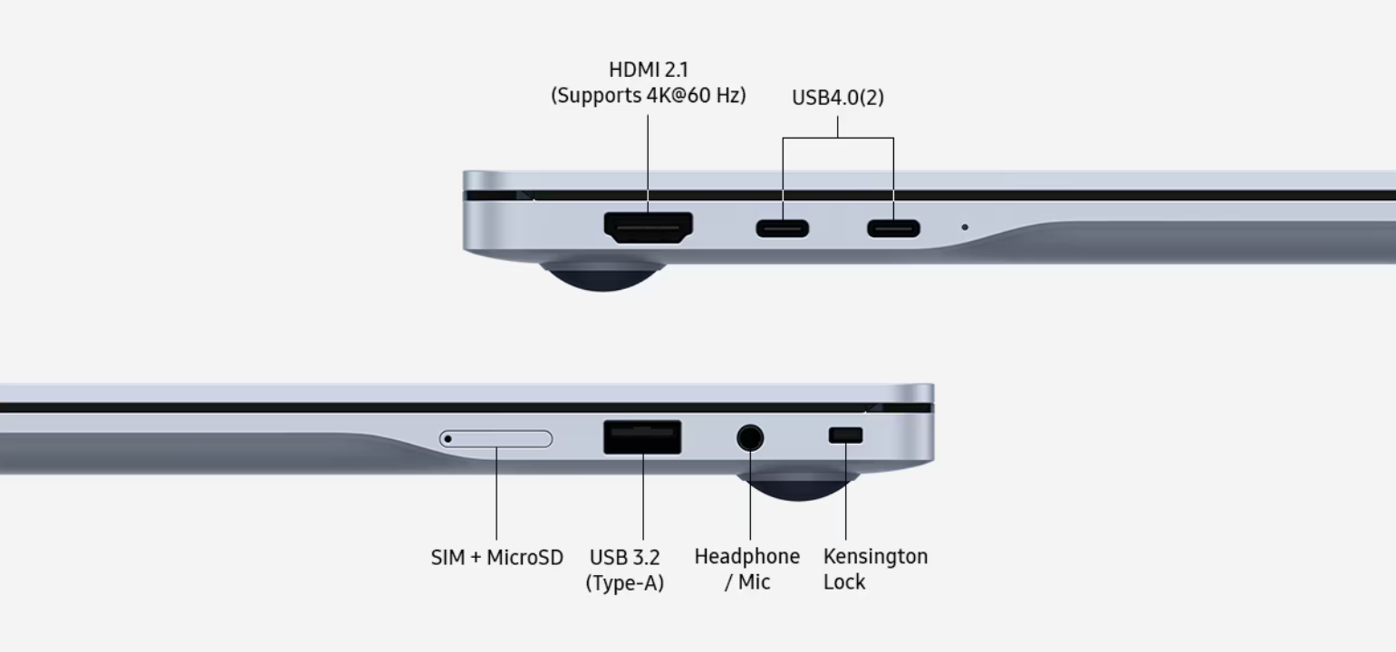 Al contrario, le porte HDMI 2.1, USB4 e USB 3.2 Type-A della Galaxy Book4 Edge così come uno slot per il lucchetto Kensington e un jack da 3,5 mm sul lato destro del portatile. Lo stesso vale per il display IPS da 15,6 pollici, che produce una risoluzione di 1080p in formato 16:9 con un rivestimento antiriflesso. Allo stesso modo, il nuovo laptop di Samsung mantiene invariata la capacità della batteria da 61,2 Wh con supporto per la ricarica a 65 W, all'interno delle stesse dimensioni di 356,6 x 229,8 x 15,5 mm del suo predecessore.
