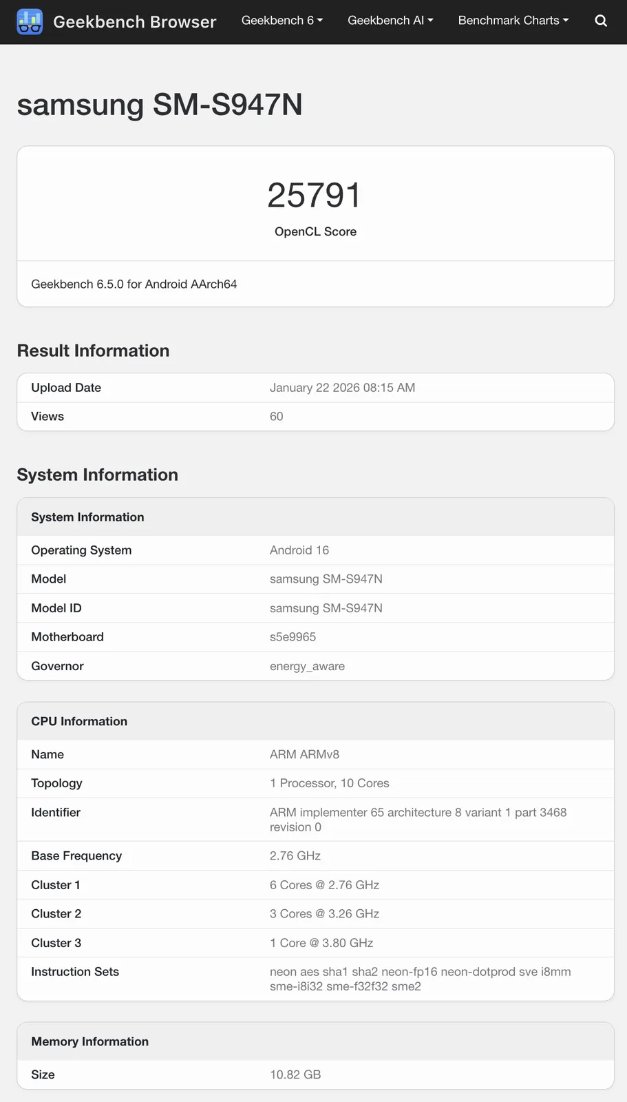 Ora, il Galaxy S26 Plus è apparso su Geekbench in una nuova serie di leak. In particolare, la sua variante sudcoreana è emersa sulla popolare piattaforma di benchmarking, indicata dalla 'N' nel suo numero di modello SM-S947N. Se c'erano dubbi, Galaxy S26 Plus sarà dotato di 12 GB di RAM, rispetto ad alcune ammiraglie e ai moderni smartphone da gioco.
