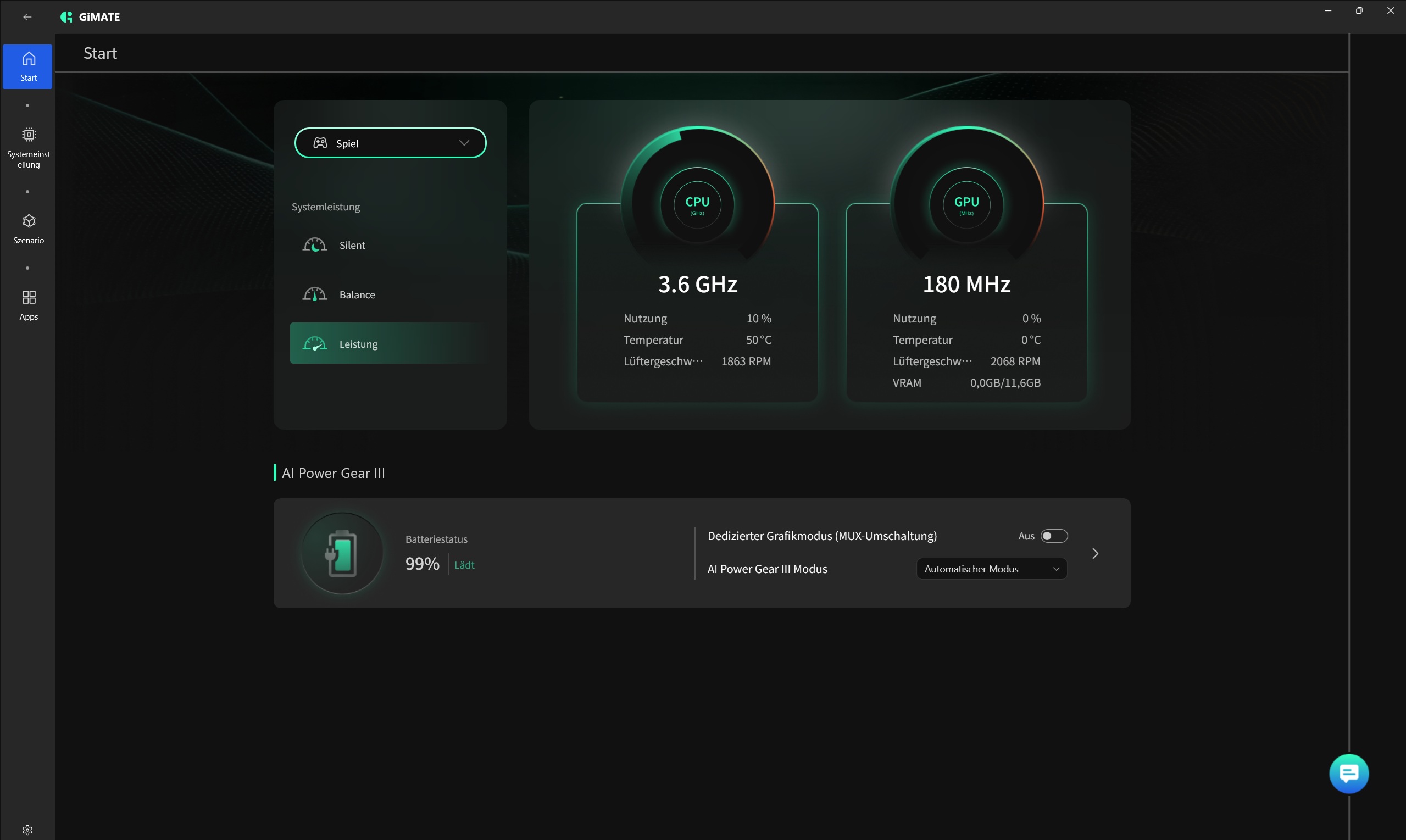 Grazie al processore relativamente efficiente dal punto di vista energetico, il consumo di energia rimane moderato. Il consumo al minimo di 10-20 watt e il consumo sotto carico di 95-179 watt sono rispettabili rispetto alla concorrenza.