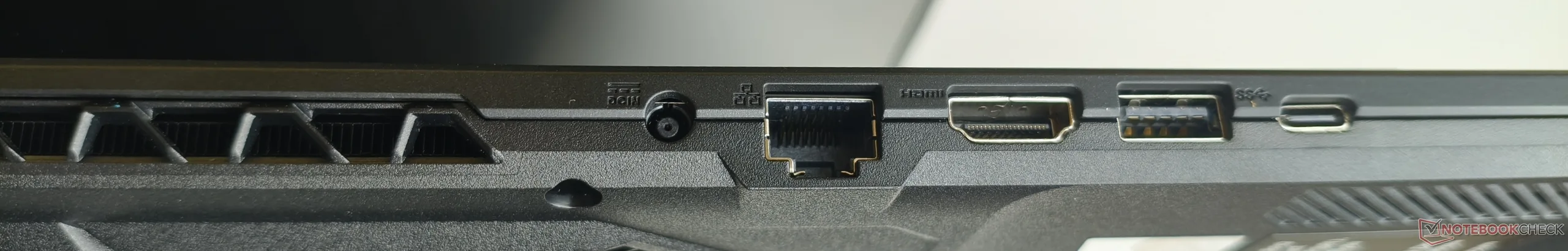 Per un portatile da 18 pollici, la selezione di porte non è particolarmente generosa. Sebbene quattro porte USB siano certamente adeguate, avremmo preferito più di una porta Type-C, soprattutto perché l'USB 4 non è supportato. Anche l'assenza di un lettore di schede è uno svantaggio.