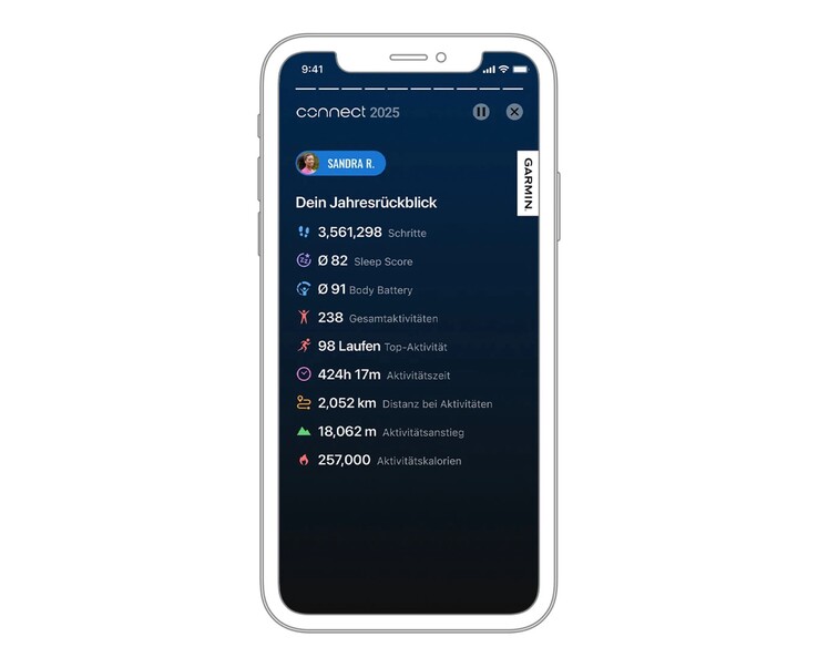 Il Rapporto Garmin Connect 2025 è arrivato, offrendo approfondimenti sulle tendenze di fitness e salute degli utenti Garmin di tutto il mondo. Una nuova funzione è Garmin Rundown, un resoconto personalizzato dell'anno disponibile nell'app Garmin Connect per smartphone. Questo report visualizza informazioni come i passi totali effettuati, le calorie bruciate, il punteggio medio del sonno e l'attività più frequentemente svolta.