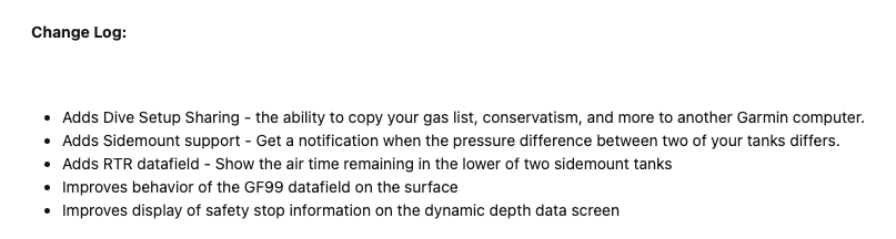 Il Descent X50i di Garmin, un computer subacqueo in stile orologio, sta ricevendo il software di sistema 5.12 di https://forums.garmin.com/outdoor-recreation/outdoor-recreation/f/descent-x50i/434737/descent-x50i-system-software-5-12. Questo dispositivo è stato aggiornato per l'ultima volta nel marzo 2026 con la versione 5.09portando il supporto per la funzione Passcode insieme ad altri strumenti.