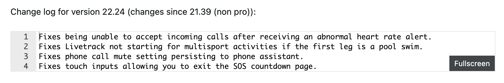 Con la versione beta 22.24, Garmin sta risolvendo un problema legato a questa nuova funzionalità di LiveTrack. È stato risolto un problema che non si avviava automaticamente per le attività multisport, in particolare quelle che iniziavano con una nuotata in piscina. In questo aggiornamento, l'azienda ha anche risolto un bug che impediva agli utenti di accettare una chiamata in arrivo a seguito di un avviso di frequenza cardiaca anomala. Inoltre, sono stati risolti i problemi con l'impostazione di silenziamento delle telefonate e la pagina del conto alla rovescia SOS.