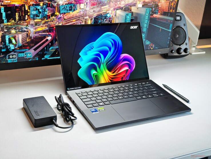 La batteria da 76 Wh consente tempi di esecuzione ragionevoli, ma il processore Lunar Lake non offre un vero vantaggio in questo caso. Con 9 ore nel test WLAN a 150 cd/m² e 6:45 ore a piena luminosità, l'Acer è appena davanti al Razer Blade 14 (72 Wh), ma anche chiaramente dietro al ROG Zephyrus G14 (73 Wh).