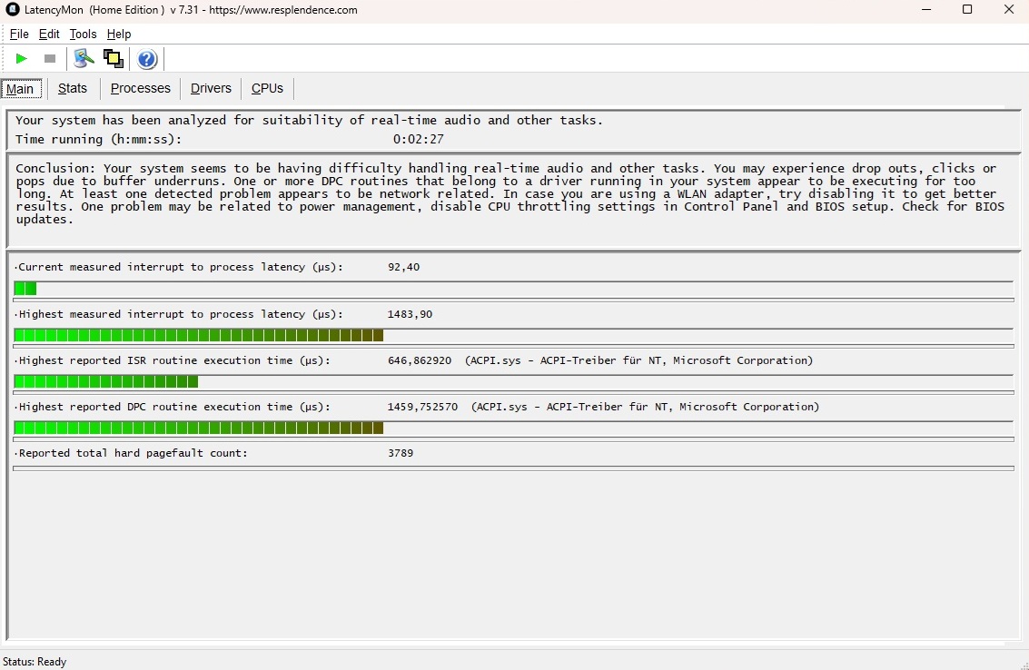 La combinazione di un consumo al minimo non ottimale e di una capacità della batteria modesta si traduce in tempi di esecuzione piuttosto deludenti. Con poco meno di quattro ore nel nostro test Wi-Fi (con luminosità ridotta a 150 cd/m²), il Cyborg 17 registra il risultato più debole nel campo di confronto. Questo non sorprende, dato che i dispositivi concorrenti offrono tra i 70 e i 96 Wh.
