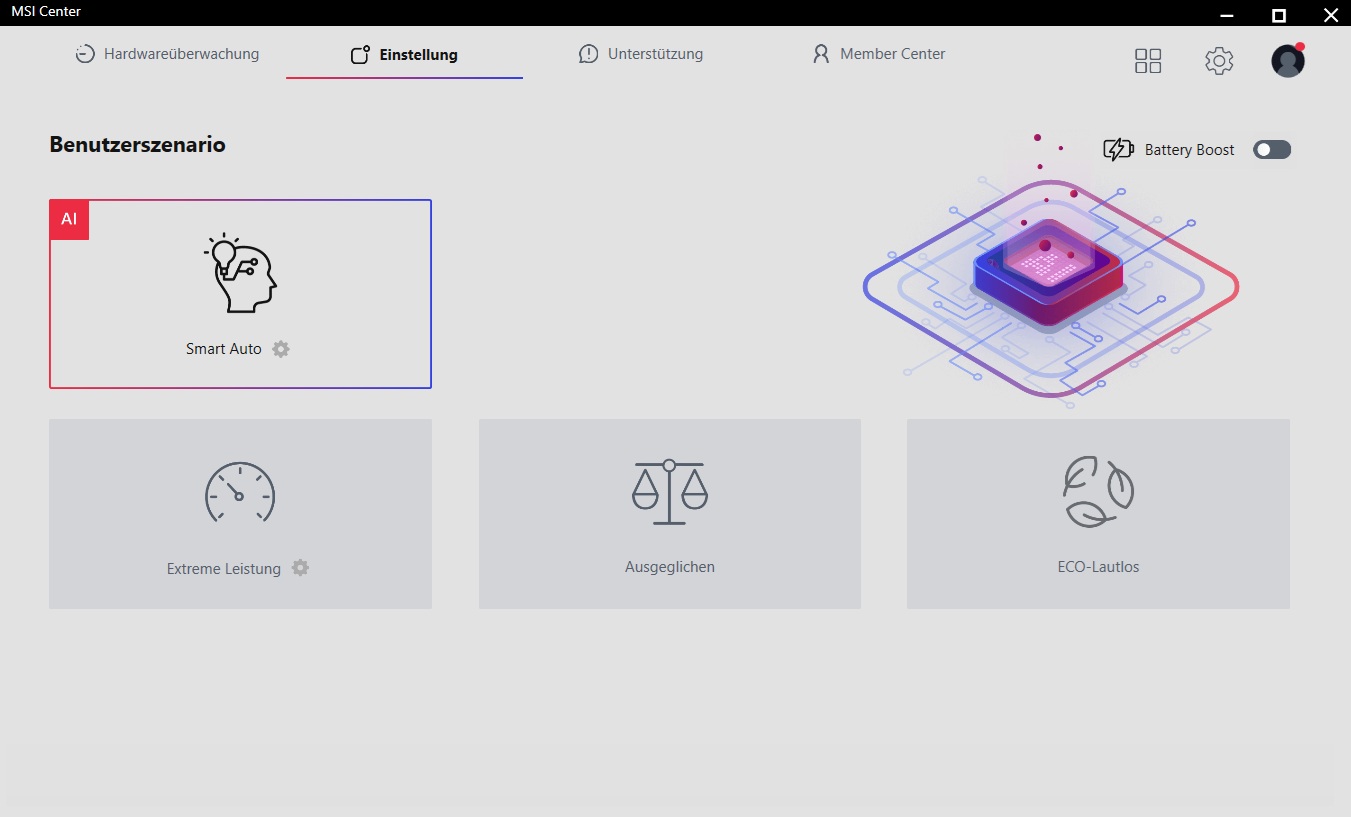 | Modalità | Smart Auto | Prestazioni estreme | Bilanciato | ECO Silenzioso |