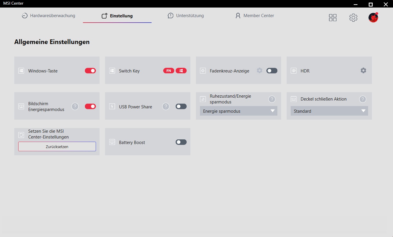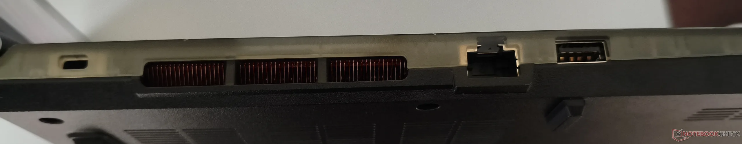 La selezione di porte non è particolarmente generosa. Tre porte USB sembrano piuttosto limitate, soprattutto perché MSI ha omesso il supporto USB 4 e Thunderbolt. Il lato positivo è che la porta USB-C disponibile supporta Power Delivery e DisplayPort. I display esterni possono anche essere collegati direttamente tramite HDMI. Completano il pacchetto un jack audio, una porta RJ45 e un lucchetto Kensington.