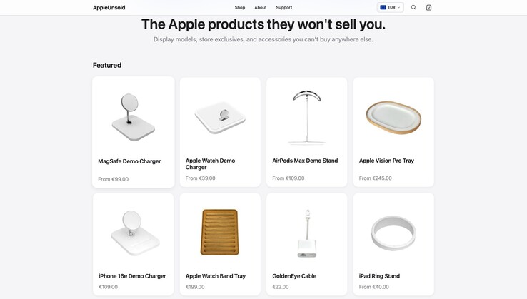 AppleUnsold è un nuovo negozio online che offre articoli che non sono mai stati destinati alla vendita ai consumatori, ma che sono stati utilizzati per presentare i prodotti nei Apple Store. I pezzi disponibili includono il caricatore demo MagSafe ufficiale per iPhone e la sua controparte per gli orologi Apple.