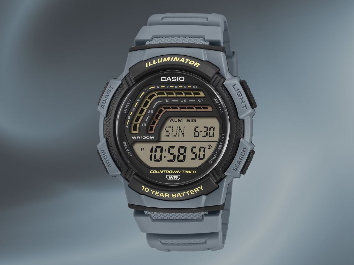 Il Casio WS1800 è descritto come un orologio digitale multifunzionale con un "ampio display grafico in stile retrò". Nella parte superiore del quadrante dell'orologio ci sono due scale, che si dice rendano più facile la lettura del timer per il conto alla rovescia o del cronometro. Al di sotto c'è un display più grande con sfondo chiaro, che mostra l'ora, la data e la data della settimana.