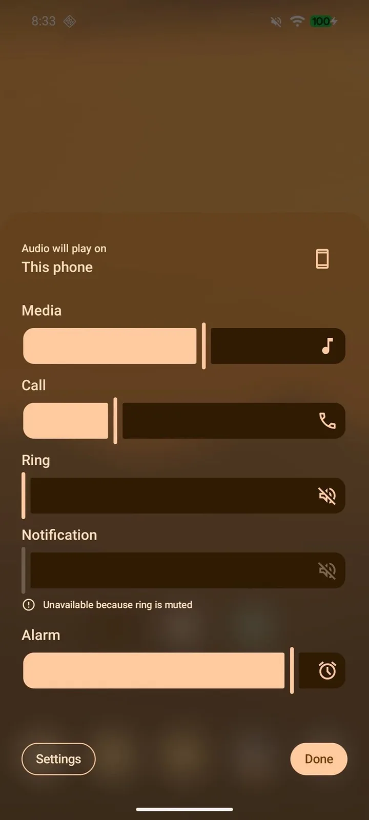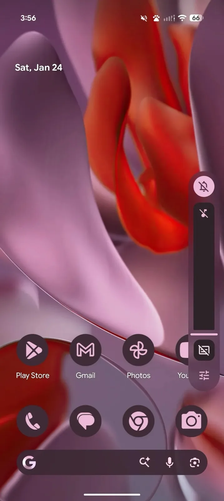 Questo nuovo approccio di design si nota chiaramente nel pannello del volume, ad esempio. Invece di uno sfondo solido come in precedenza, lo sfondo è ora leggermente trasparente, in quanto gli elementi dietro di esso sono sfocati molto più pesantemente rispetto ai dispositivi Apple, per migliorare la leggibilità. Google tinge queste aree trasparenti utilizzando il colore d'accento selezionato dall'utente.