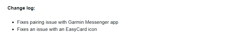Il registro delle modifiche per la versione beta 17.02 è identico a quello della versione 17.01. Elenca la risoluzione di un problema legato all'accoppiamento per l'applicazione Garmin Messenger e indica anche che è stato risolto un bug legato all'icona EasyCard. Sulla base di queste note di rilascio, non è chiaro in che modo questa versione beta si differenzi dal suo predecessore stabile.