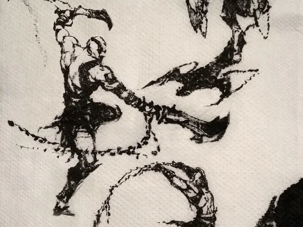 Jaffe ha dato un'occhiata alla figura cinerea di Kratos sul foglio di carta e ha deciso che questo sarebbe stato il design finale del Fantasma di Sparta.
