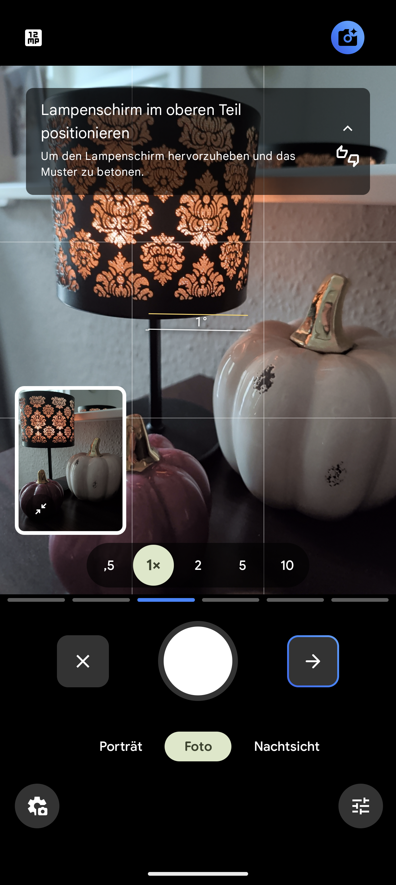 Innanzitutto, deve essere attivata nelle impostazioni e poi può essere utilizzata tramite la piccola icona della fotocamera AI nell'app della fotocamera. Non appena si tocca l'icona, l'algoritmo analizza la vista live della fotocamera, che avviene nel cloud. Il coach fornisce quindi una selezione di possibili composizioni di immagini e la guida attraverso il processo in diverse fasi, che abbiamo riassunto qui in una serie di immagini, compreso il risultato (ultima immagine):