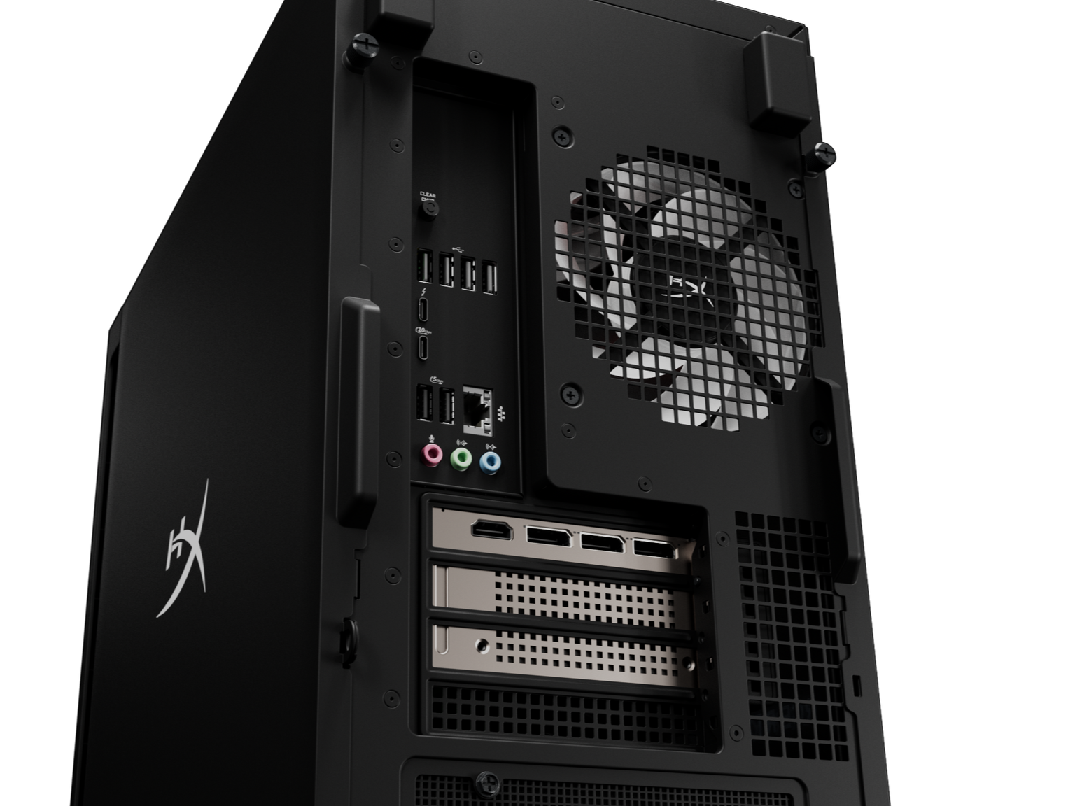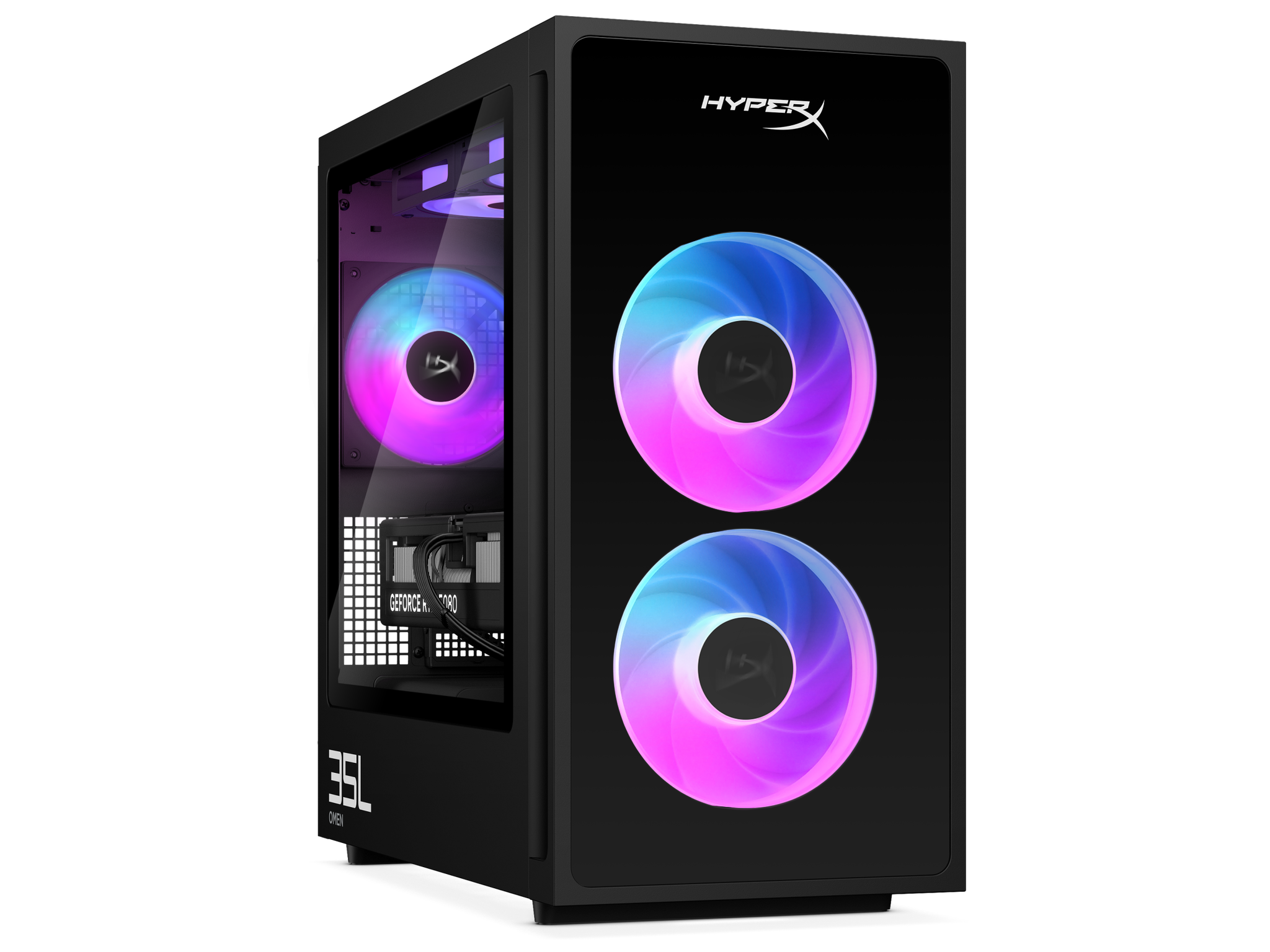 Purtroppo, Omen 35L non può essere configurato con un HDD SATA. Tuttavia, è possibile scegliere un SSD PCIe Gen 5 da 2 TB e un SSD PCIe Gen4 da 2 TB. HP mantiene fresco il sistema con ventole da 120 mm: due sulla parte anteriore, una sulla parte posteriore e due sulla parte superiore. E sì, c'è l'RGB.