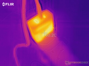 Ha anche iniziato ad emettere un forte odore al suo primo attacco di carica sostenuta - per non parlare del calore: Il test di temperatura dopo circa 1 ora di utilizzo ha rivelato che ha superato facilmente la soglia dei 40 °C, con punti caldi che hanno raggiunto circa 60 °C. Questo comportamento è stato il risultato di un leggero gaming (Alto’s Odyssey) durante questa sessione di ricarica.
