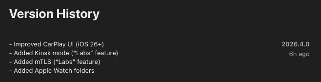 La versione 2026.4.0 dell'app Home Assistant include anche tre nuove funzionalità. Una di queste è la modalità Kiosk, che sembra essere collegata all'integrazione di Fully Kiosk Browser. Un'altra è la Mutual Transport Layer Security (mTLS), una forma di autenticazione per una maggiore sicurezza. Entrambe queste funzioni sono "Labs", il che significa che sono ancora in fase di test, anche se dovrebbero essere prive di bug importanti. Infine, ora è disponibile il supporto per le cartelle nell'app Apple Watch(Serie 11 46 mm GPS, prezzo attuale 359 dollari su Amazon).