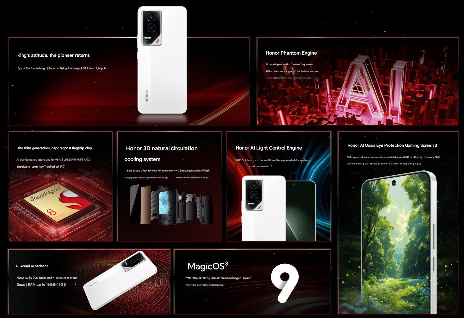 Il Honor GT si presenta come un nuovo smartphone da gioco in grado di competere con le recenti versioni di Asus ROG, iQOO e RedMagic, tra gli altri. Tuttavia, lo fa con lo Snapdragon 8 Gen 3 di Qualcomm. Di conseguenza, Honor GT avrà una potenza pari a quella del più vecchio RedMagic 9 Pro o ROG Phone 8 (al momento 799,99 dollari su Amazon), piuttosto che del loro Snapdragon 8 Elite-che hanno come successore lo Snapdragon 8 Elite.