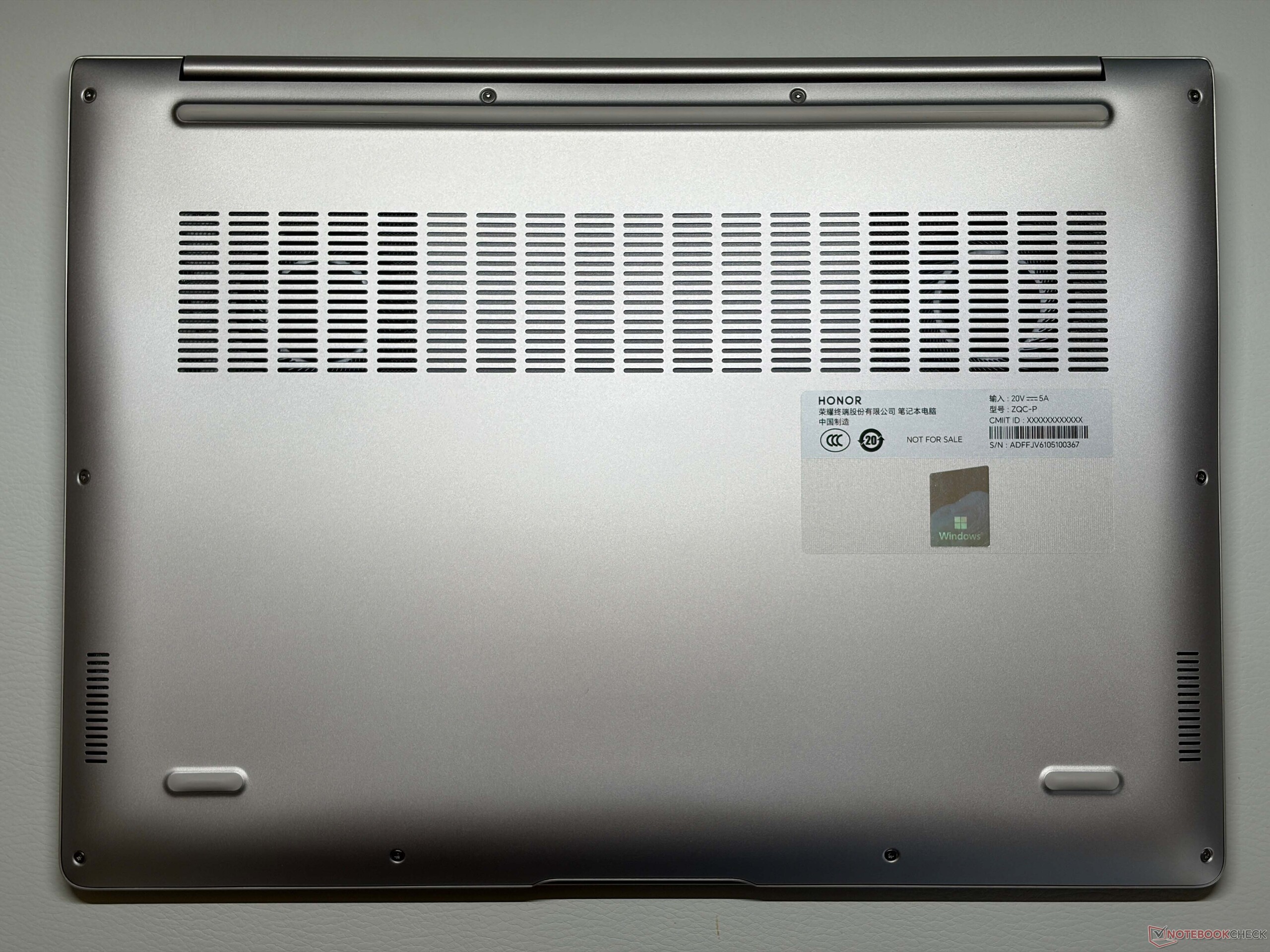 Honor utilizza ancora lo stesso chassis del precedente MagicBook Pro 14 per il nuovo modello 2026. Lo chassis in metallo è disponibile in tre colori diversi (grigio stellato, verde o bianco) e la qualità lascia un'ottima impressione. Sia l'unità base che il coperchio sono molto robusti e le cerniere sono ben regolate (angolo di apertura massimo ~165 gradi). È possibile aprire facilmente il coperchio con una sola mano, ma non ci sono oscillazioni degne di nota. È facile rimuovere il pannello inferiore, ma la manutenzione è limitata alle ventole, alla batteria e ai due slot SSD.