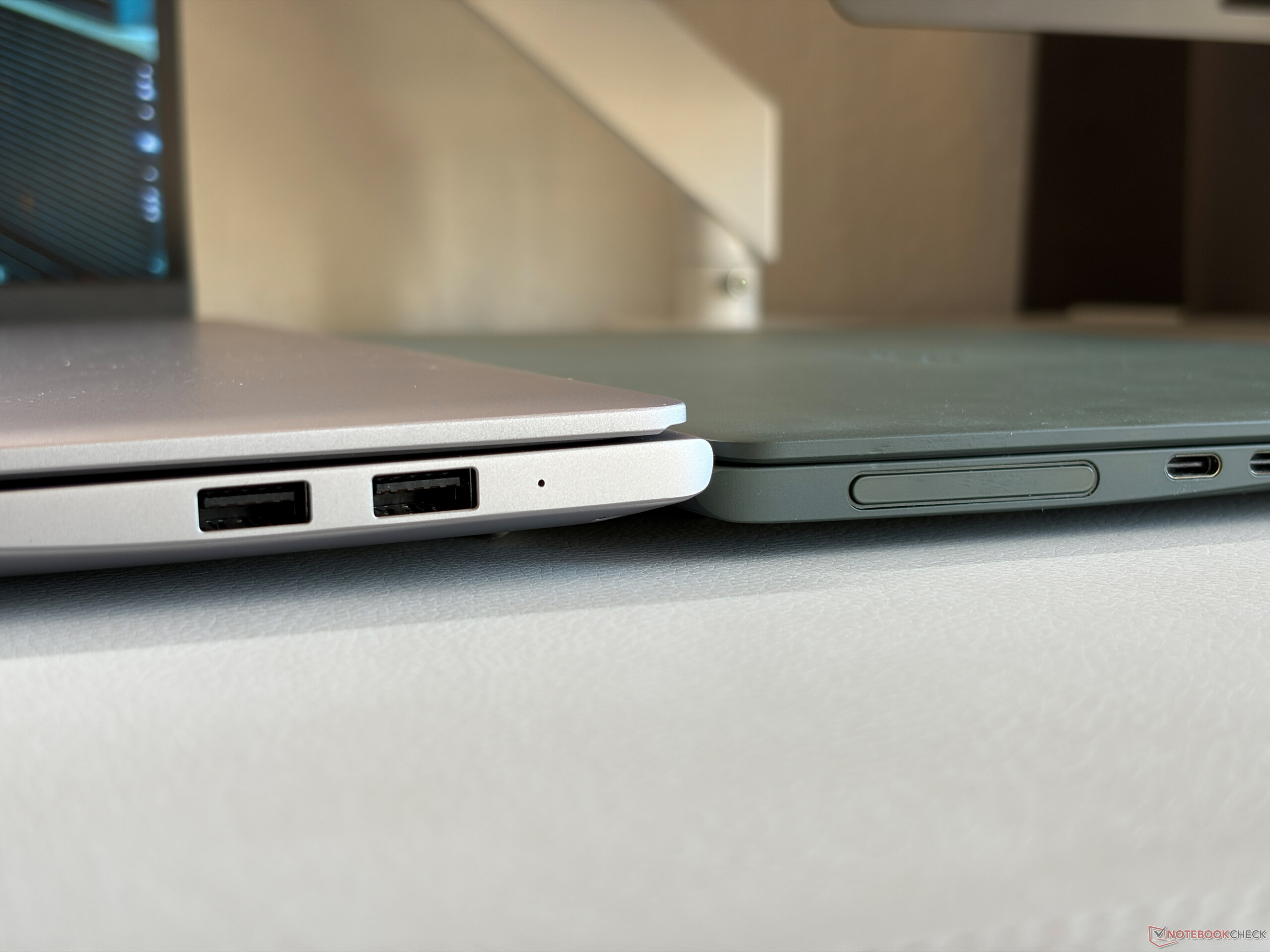 Sono disponibili un totale di quattro porte USB (1x Thunderbolt 4) e una HDMI. Il modulo Wi-Fi non supporta il Wi-Fi 7, ma riesce comunque a raggiungere velocità di trasferimento elevate e stabili nel nostro test. La webcam a 1080p (incluso il sensore IR) scatta foto medie.