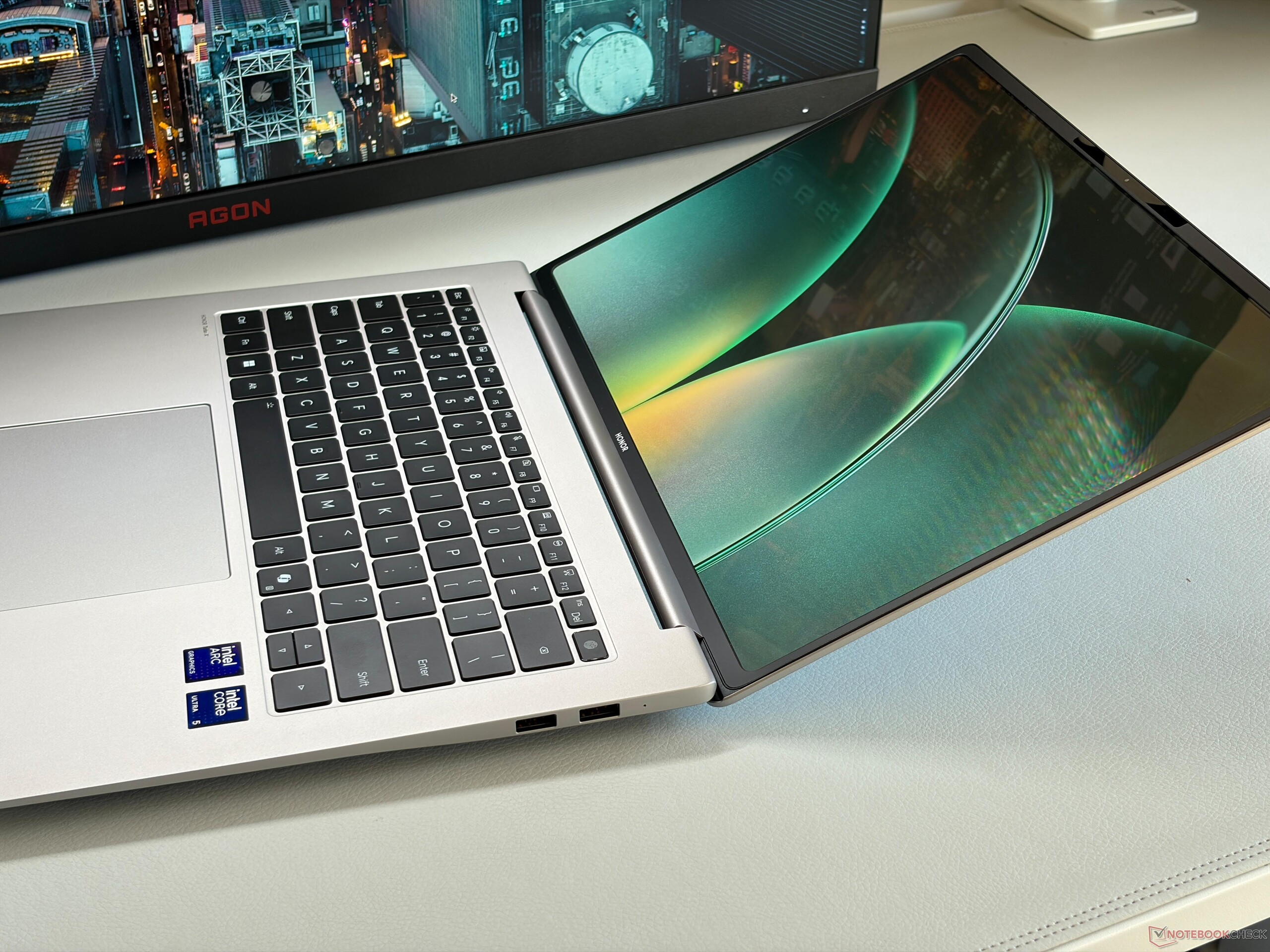 Honor utilizza il noto touchscreen OLED 3K con un rapporto di aspetto 3:2 e offre una qualità d'immagine superba. Anche i contenuti più luminosi non appaiono sgranati, nonostante lo strato touch, i movimenti sono molto fluidi grazie ai 120 Hz e si ottengono profili di colore accurati, in modo da poter iniziare immediatamente con l'editing di immagini o video. Anche l'autonomia della batteria è molto buona, con 15 ore nel nostro test Wi-Fi.
